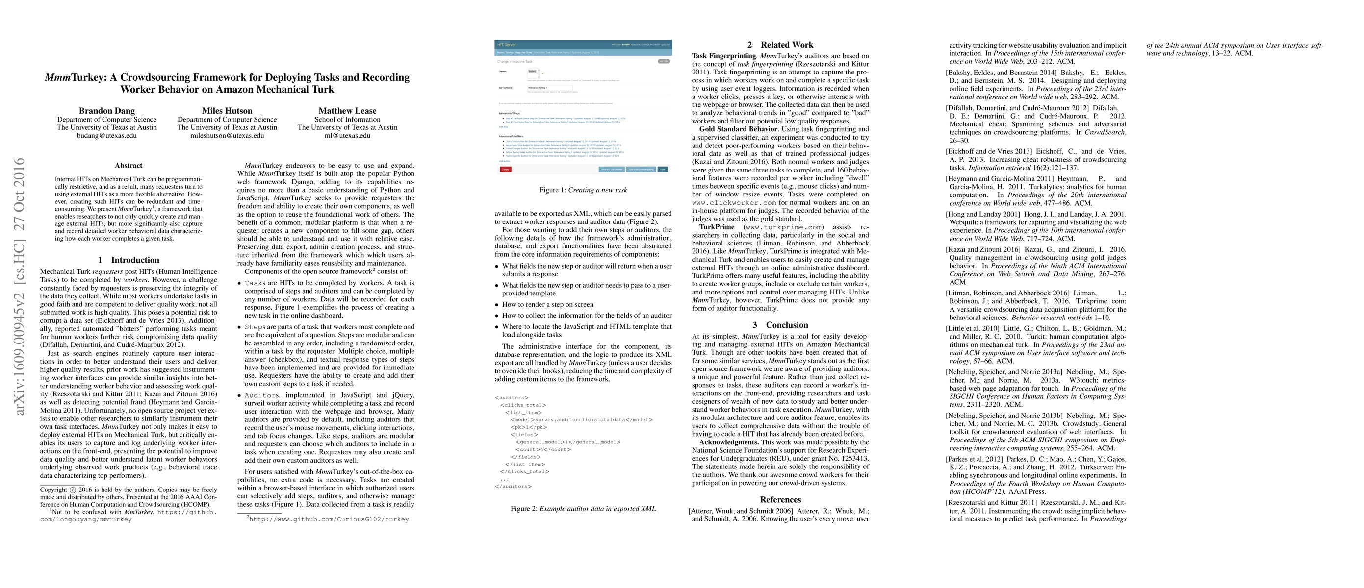 A new framework called MmmTurkey enables researchers to create flexible external HITs on Amazon Mechanical Turk while capturing detailed worker behavioral data. This allows for more efficient task deployment and accurate analysis of worker behavior.