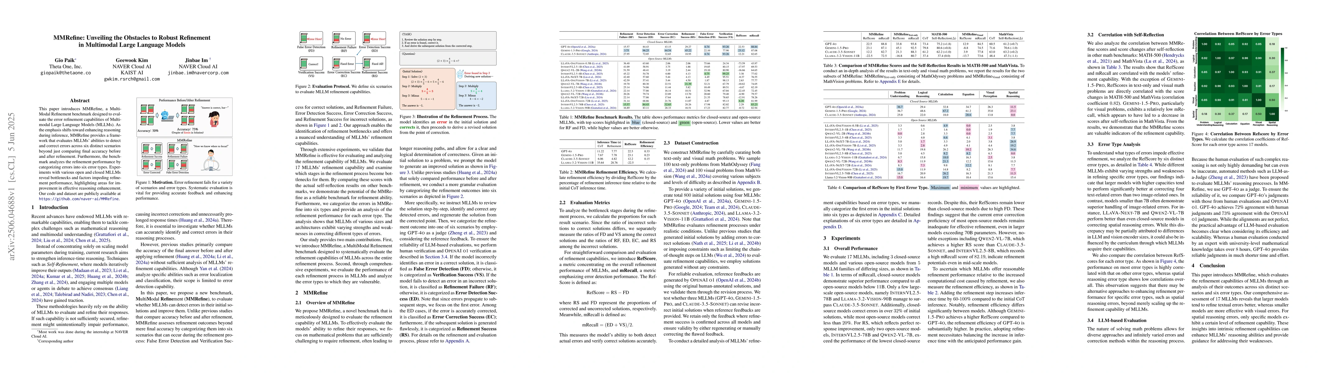 The paper introduces MMRefine, a benchmark for evaluating error refinement capabilities of Multimodal Large Language Models (MLLMs) across six distinct error scenarios, categorizing errors for detailed analysis.