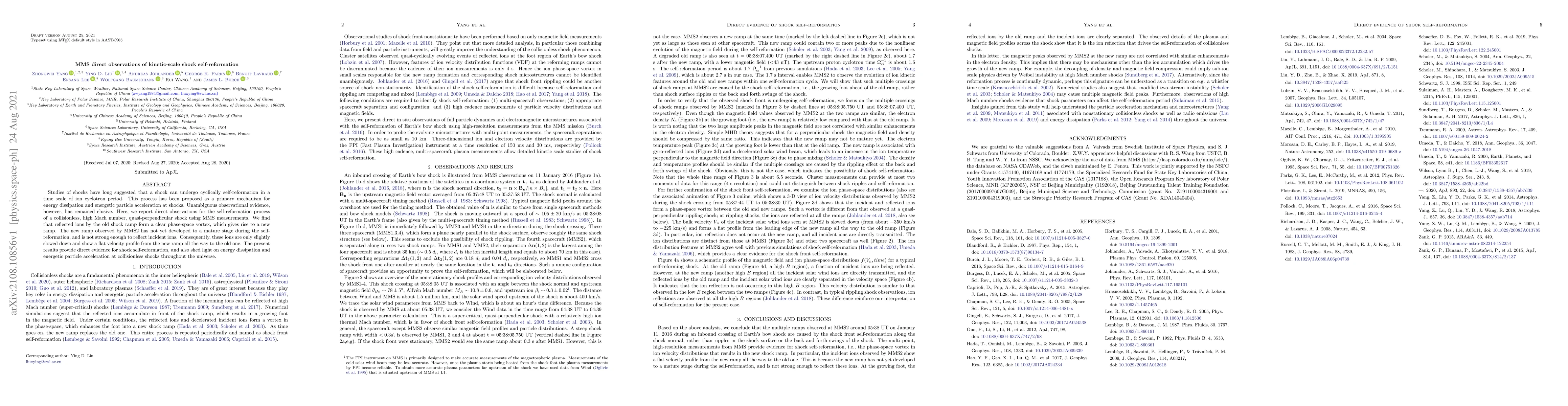 The MMS spacecraft directly observed the self-reformation of a high Mach number, quasi-perpendicular shock, revealing that reflected ions form a phase-space vortex leading to a new shock ramp, providing evidence for shock energy dissipation and particle acceleration mechanisms.