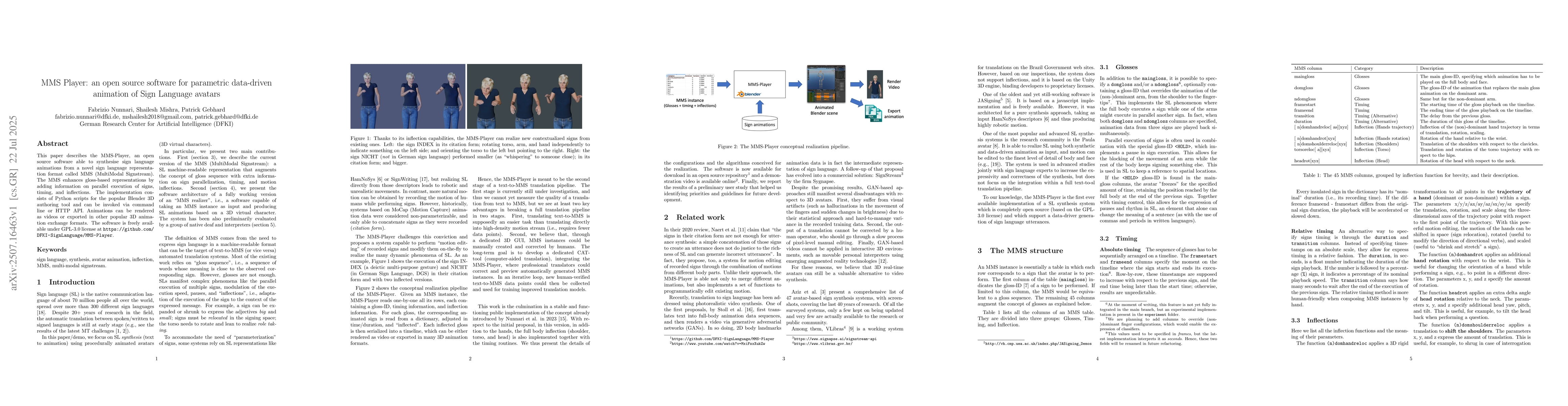 This paper describes the MMS-Player, an open source software able to synthesise sign language animations from a novel sign language representation format called MMS (MultiModal Signstream). The MMS enhances gloss-based representations by adding information on parallel execution of signs, timing, and inflections. The implementation consists of Python scripts for the popular Blender 3D authoring tool and can be invoked via command line or HTTP API. Animations can be rendered as videos or exported in other popular 3D animation exchange formats. The software is freely available under GPL-3.0 license at https://github.com/DFKI-SignLanguage/MMS-Player.