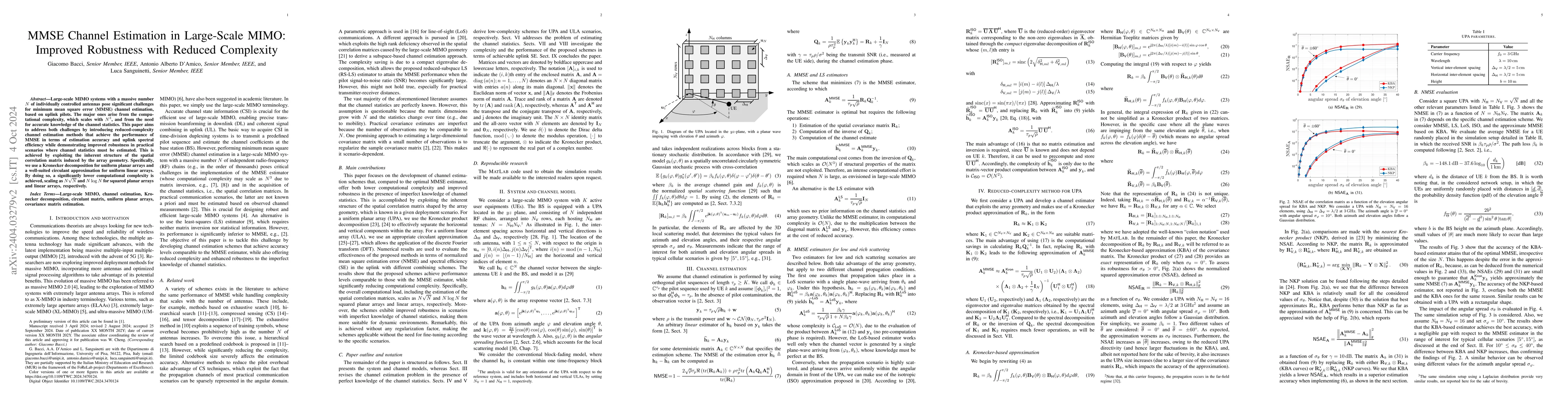 This paper proposes reduced-complexity methods for MMSE channel estimation in large-scale MIMO systems, achieving MMSE performance with significantly lower computational complexity, using Kronecker decomposition for planar arrays and circulant approximation for linear arrays.