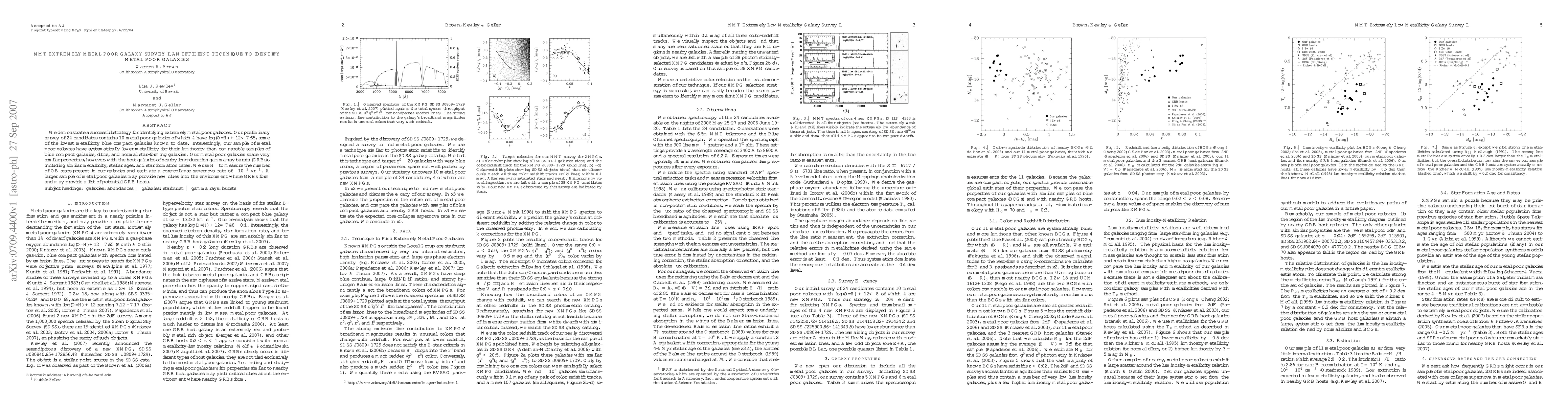 This paper presents a method for identifying extremely metal poor galaxies, finding 10 such galaxies in a survey of 24 candidates, with 4 having very low metallicity. These galaxies share properties with those hosting long-duration gamma-ray bursts, suggesting they may be potential GRB hosts.