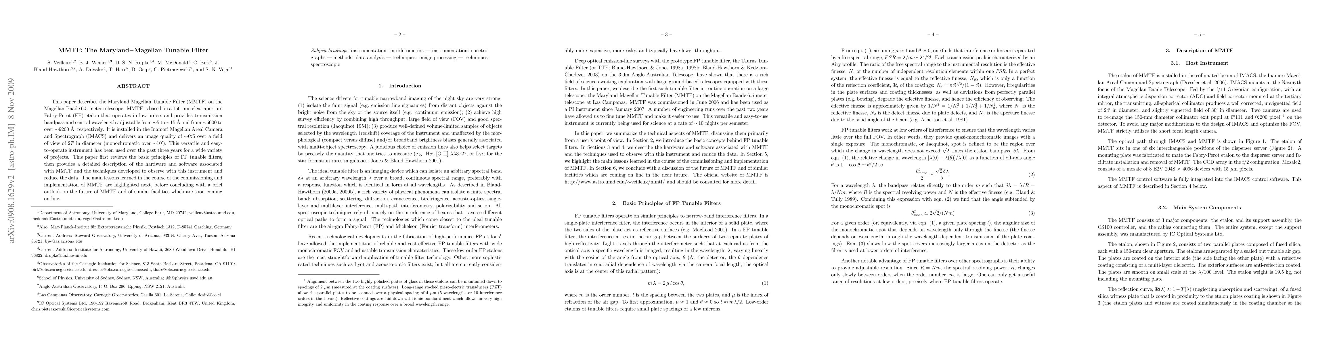 This paper describes the Maryland-Magellan Tunable Filter (MMTF) on the Magellan-Baade 6.5-meter telescope. MMTF is based on a 150-mm clear aperture Fabry-Perot (FP) etalon that operates in low orders and provides transmission bandpass and central wavelength adjustable from ~5 to ~15 A and from ~5000 to over ~9200 A, respectively. It is installed in the Inamori Magellan Areal Camera and Spectrograph (IMACS) and delivers an image quality of ~0.5" over a field of view of 27' in diameter (monochromatic over ~10'). This versatile and easy-to-operate instrument has been used over the past three years for a wide variety of projects. This paper first reviews the basic principles of FP tunable filters, then provides a detailed description of the hardware and software associated with MMTF and the techniques developed to observe with this instrument and reduce the data. The main lessons learned in the course of the commissioning and implementation of MMTF are highlighted next, before concluding with a brief outlook on the future of MMTF and of similar facilities which are soon coming on line.