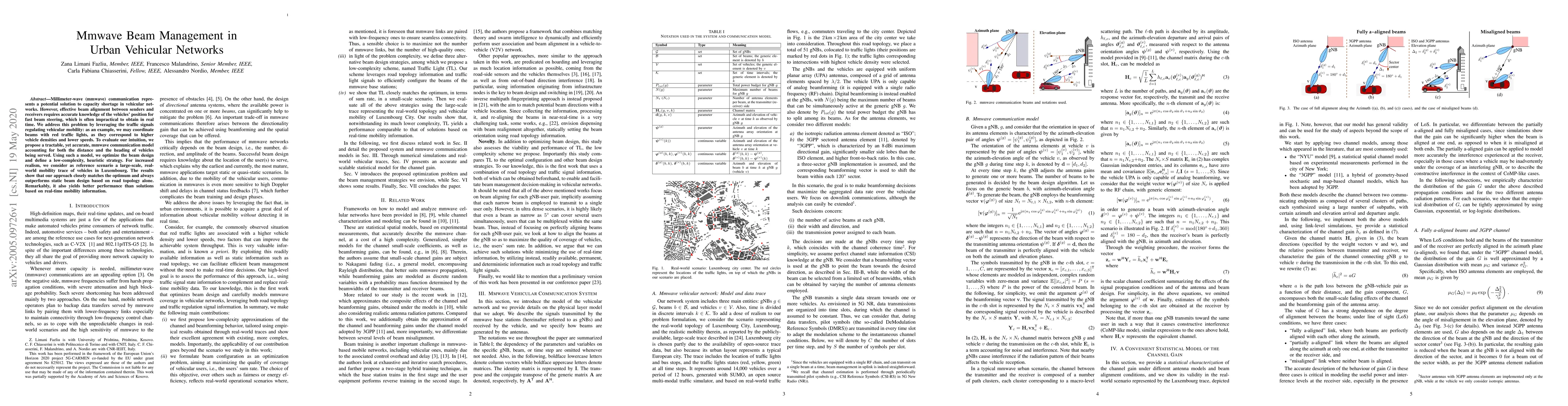 The paper presents tractable yet accurate mmWave communication models considering both distance and heading of vehicles, along with a low-complexity heuristic strategy for beam design optimization.
