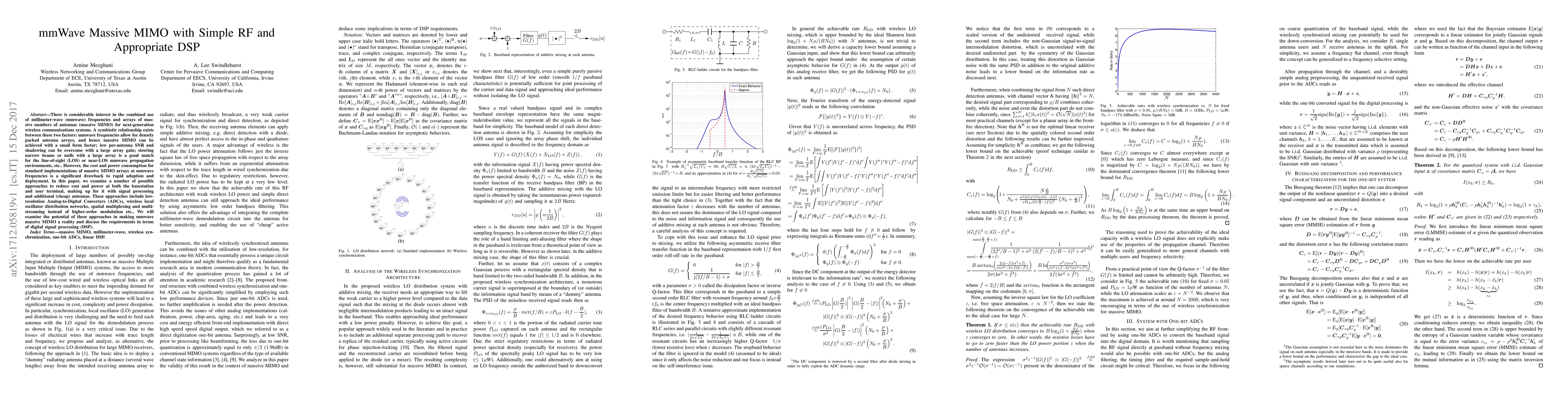 This paper explores cost-effective and power-efficient methods for implementing mmWave massive MIMO systems, utilizing simple RF components and appropriate DSP techniques. It proposes solutions like low-resolution ADCs and wireless local oscillator distribution to reduce expenses while maintaining performance through signal processing enhancements.