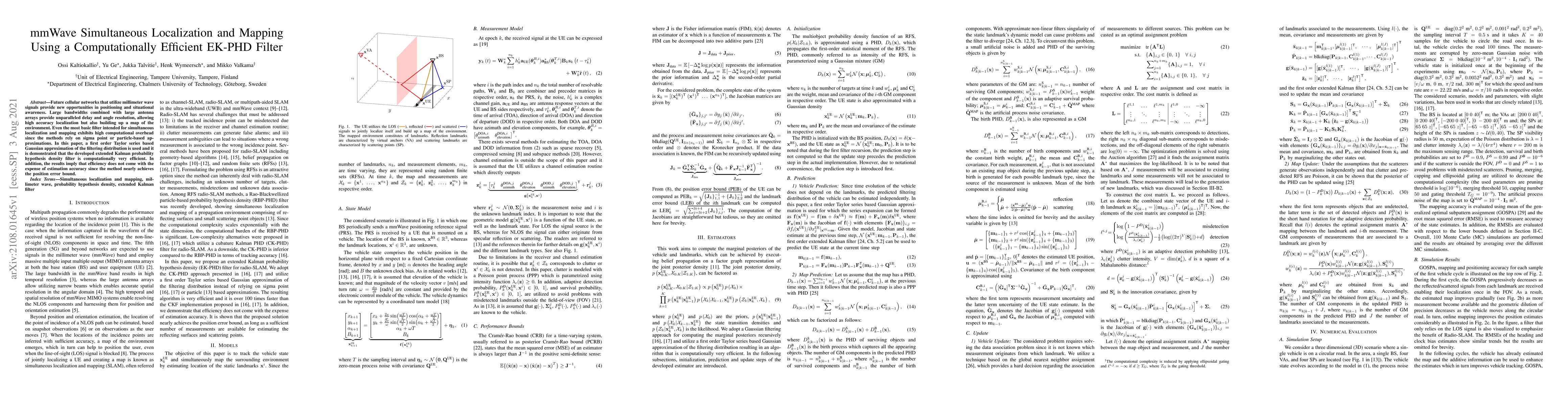 This paper proposes a computationally efficient extended Kalman probability hypothesis density filter for mmWave simultaneous localization and mapping, utilizing a first-order Taylor series Gaussian approximation. The method achieves high accuracy while significantly reducing computational overhead compared to traditional sigma point or particle-based filters.