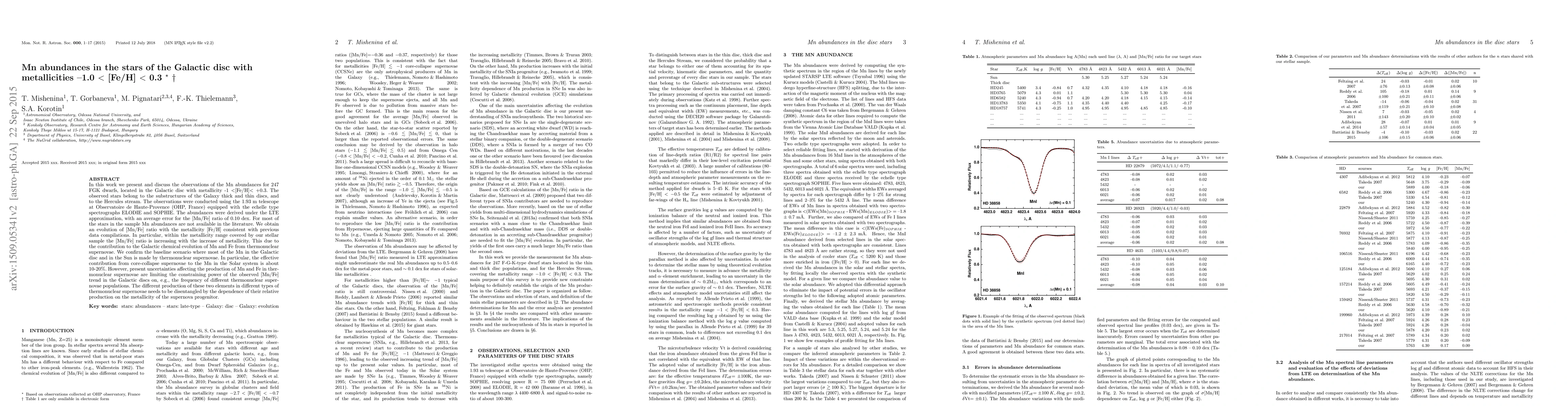 This study contributes to understanding the Galactic chemical evolution by examining the Mn/Fe ratio trend in the Galactic disc, which can help constrain the frequency of different thermonuclear supernova populations.