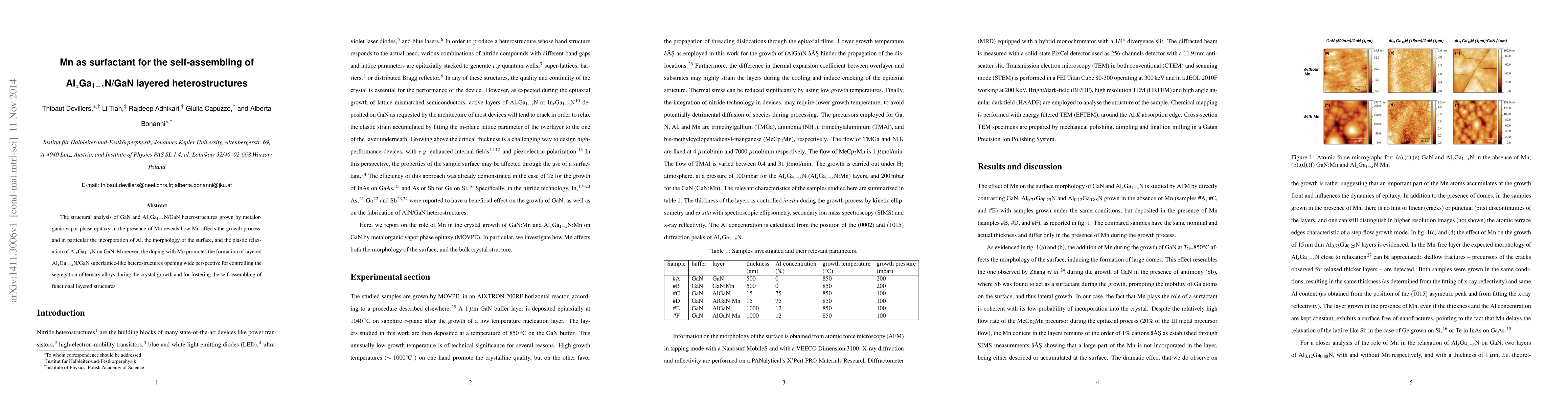 The structural analysis of GaN and Al$_x$Ga$_{1-x}$N/GaN heterostructures grown by metalorganic vapor phase epitaxy in the presence of Mn reveals how Mn affects the growth process, and in particular the incorporation of Al, the morphology of the surface, and the plastic relaxation of Al$_x$Ga$_{1-x}$N on GaN. Moreover, the doping with Mn promotes the formation of layered Al$_x$Ga$_{1-x}$N/GaN superlattice-like heterostructures opening wide perspective for controlling the segregation of ternary alloys during the crystal growth and for fostering the self-assembling of functional layered structures.