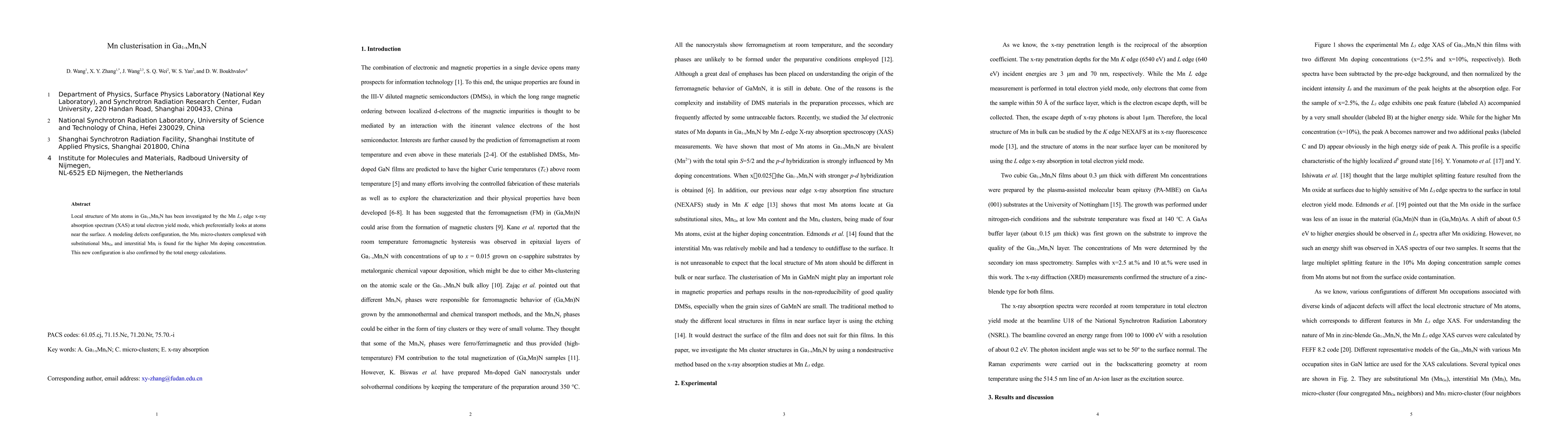 Local structure of Mn atoms in Ga1-xMnxN has been investigated by the Mn L3 edge x-ray absorption spectrum (XAS) at total electron yield mode, which preferentially looks at atoms near the surface. A modeling defects configuration, the Mn5 micro-clusters complexed with substitutional MnGa and interstitial MnI is found for the higher Mn doping concentration. This new configuration is also confirmed by the total energy calculations.