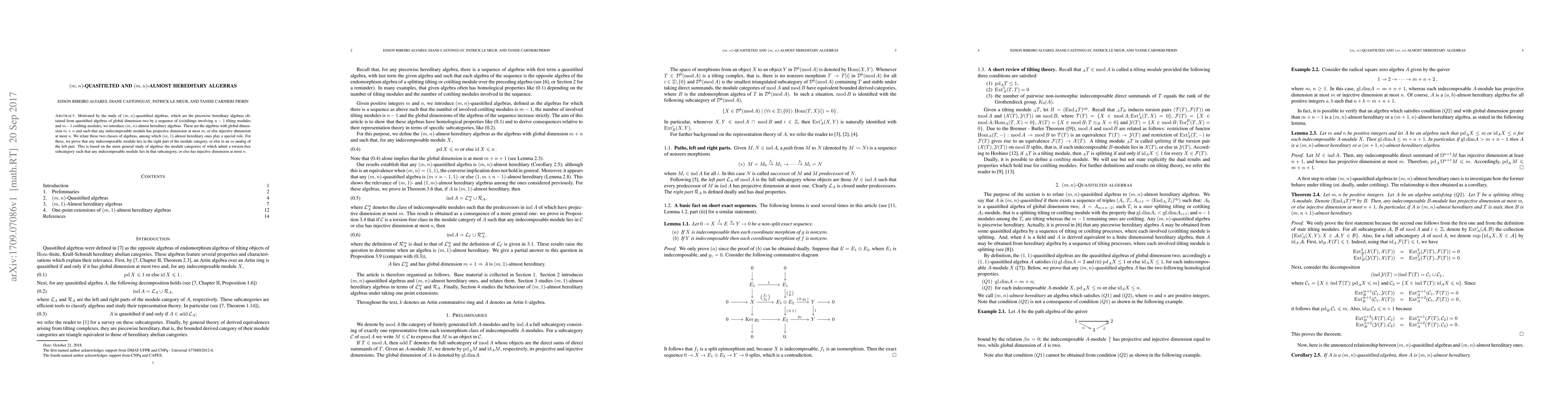 Motivated by the study of (m,n)-quasitilted algebras, which are the piecewise hereditary algebras obtained from quasitilted algebras of global dimension two by a sequence of (co)tiltings involving n-1 tilting modules and m-1 cotilting modules, we introduce (m,n)-almost hereditary algebras. These are the algebras with global dimension m+n and such that any indecomposable module has projective dimension at most m, or else injective dimension at most n. We relate these two classes of algebras, among which (m,1)-almost hereditary ones play a special role. For these, we prove that any indecomposable module lies in the right part of the module category, or else in an m-analog of the left part. This is based on the more general study of algebras the module categories of which admit a torsion-free subcategory such that any indecomposable module lies in that subcategory, or else has injective dimension at most n.