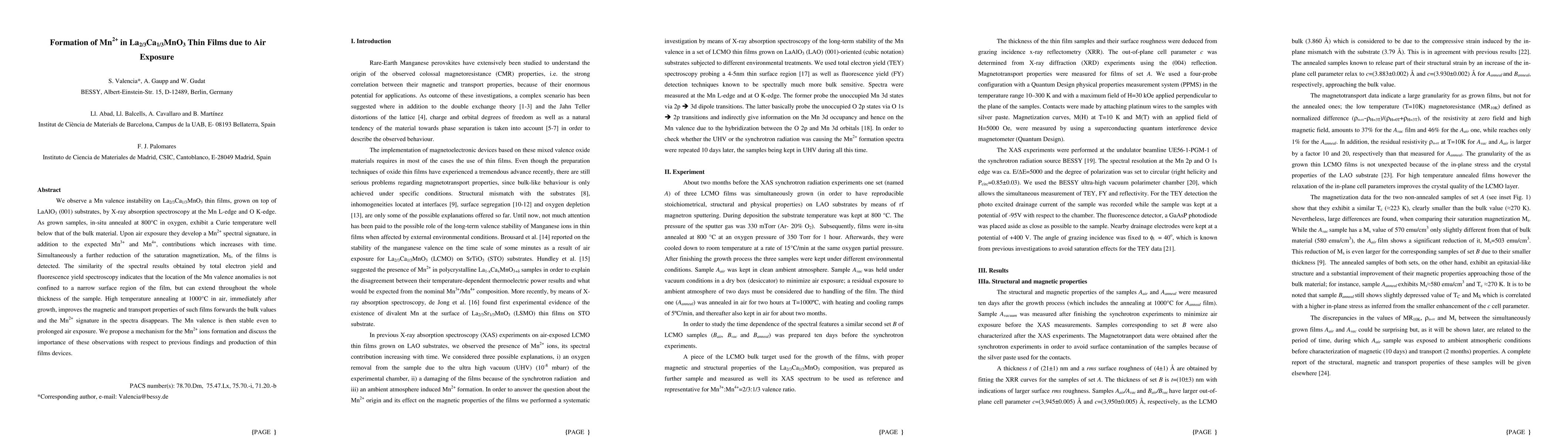 This study investigates Mn valence instability in La2/3Ca1/3MnO3 thin films using x-ray absorption spectroscopy, revealing that air exposure induces Mn2+ formation alongside Mn3+ and Mn4+. High-temperature annealing in air stabilizes Mn valence and improves magnetic properties.