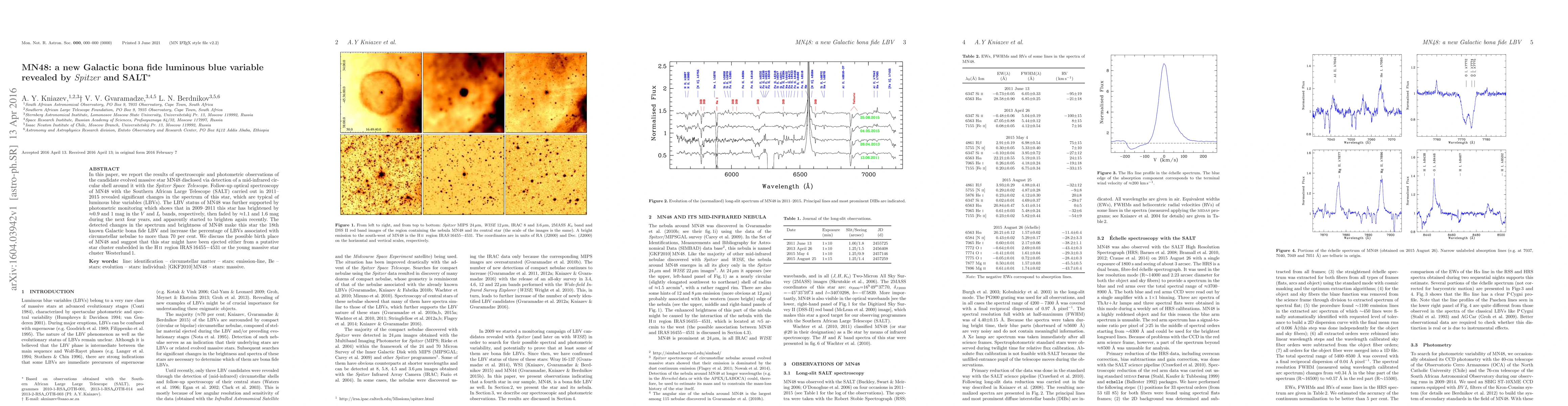 In this paper, we report the results of spectroscopic and photometric observations of the candidate evolved massive star MN48 disclosed via detection of a mid-infrared circular shell around it with the Spitzer Space Telescope. Follow-up optical spectroscopy of MN48 with the Southern African Large Telescope (SALT) carried out in 2011--2015 revealed significant changes in the spectrum of this star, which are typical of luminous blue variables (LBVs). The LBV status of MN48 was further supported by photometric monitoring which shows that in 2009--2011 this star has brightened by approx 0.9 and 1 mag in the V and I_c bands, respectively, then faded by approx 1.1 and 1.6 mag during the next four years, and apparently started to brighten again recently. The detected changes in the spectrum and brightness of MN48 make this star the 18th known Galactic bona fide LBV and increase the percentage of LBVs associated with circumstellar nebulae to more than 70 per cent. We discuss the possible birth place of MN48 and suggest that this star might have been ejected either from a putative star cluster embedded in the HII region IRAS 16455-4531 or the young massive star cluster Westerlund 1.