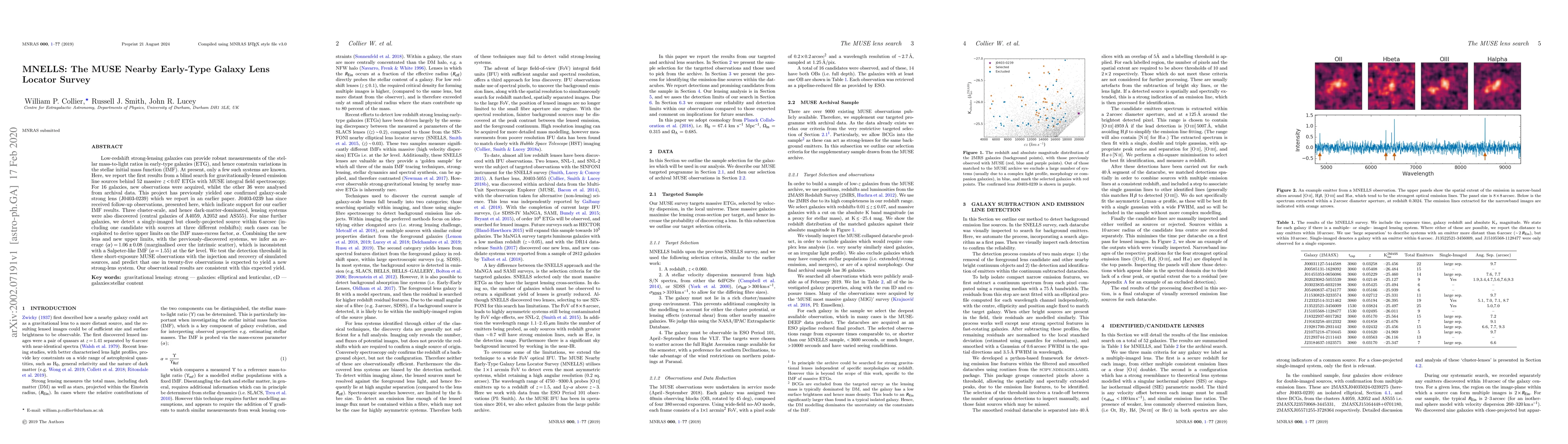 The MUSE Nearby Early-Type Galaxy Lens Locator Survey (MNELLS) identified new strong-lensing systems and upper limits, revealing an average IMF mass-excess factor (u03bc) of 1.06 ± 0.08, inconsistent with a Salpeter-like IMF at a 6u00b9 significance level. The survey targeted 52 massive, low-redshift ETGs, uncovering one confirmed galaxy-scale lens, three cluster-scale lenses, and nine galaxies with closely-projected sources for IMF constraints.