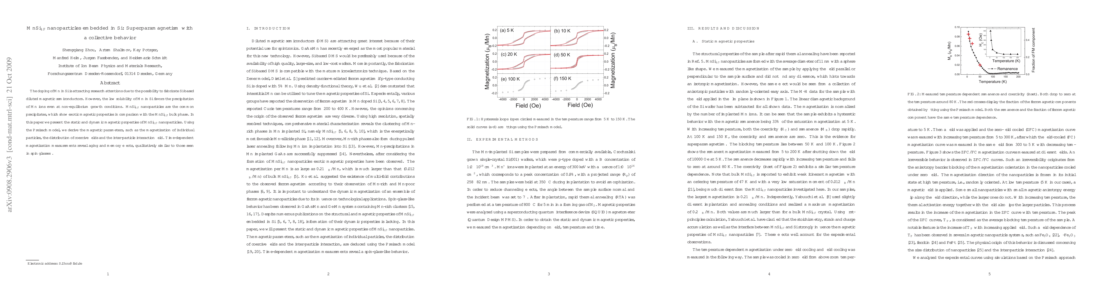 The doping of Mn in Si is attracting research attentions due to the possibility to fabricate Si-based diluted magnetic semiconductors. However, the low solubility of Mn in Si favors the precipitation of Mn ions even at non-equilibrium growth conditions. MnSi$_{1.7}$ nanoparticles are the common precipitates, which show exotic magnetic properties in comparison with the MnSi$_{1.7}$ bulk phase. In this paper we present the static and dynamic magnetic properties of MnSi$_{1.7}$ nanoparticles. Using the Preisach model, we derive the magnetic parameters, such as the magnetization of individual particles, the distribution of coercive fields and the inter-particle interaction field. Time-dependent magnetization measurements reveal a spin-glass behavior of the system.