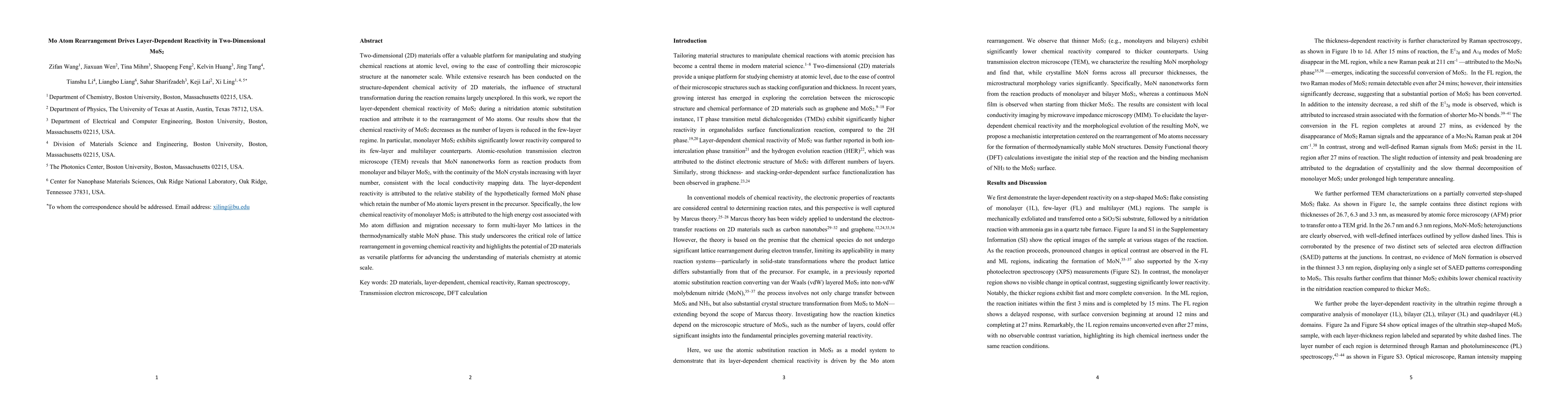 Two-dimensional (2D) materials offer a valuable platform for manipulating and studying chemical reactions at atomic level, owing to the ease of controlling their microscopic structure at the nanometer scale. While extensive research has been conducted on the structure-dependent chemical activity of 2D materials, the influence of structural transformation during the reaction remains largely unexplored. In this work, we report the layer-dependent chemical reactivity of MoS2 during a nitridation atomic substitution reaction and attribute it to the rearrangement of Mo atoms. Our results show that the chemical reactivity of MoS2 decreases as the number of layers is reduced in the few-layer regime. In particular, monolayer MoS2 exhibits significantly lower reactivity compared to its few-layer and multilayer counterparts. Atomic-resolution transmission electron microscope (TEM) reveals that MoN nanonetworks form as reaction products from monolayer and bilayer MoS2, with the continuity of the MoN crystals increasing with layer number, consistent with the local conductivity mapping data. The layer-dependent reactivity is attributed to the relative stability of the hypothetically formed MoN phase which retain the number of Mo atomic layers present in the precursor. Specifically, the low chemical reactivity of monolayer MoS2 is attributed to the high energy cost associated with Mo atom diffusion and migration necessary to form multi-layer Mo lattices in the thermodynamically stable MoN phase. This study underscores the critical role of lattice rearrangement in governing chemical reactivity and highlights the potential of 2D materials as versatile platforms for advancing the understanding of materials chemistry at atomic scale.