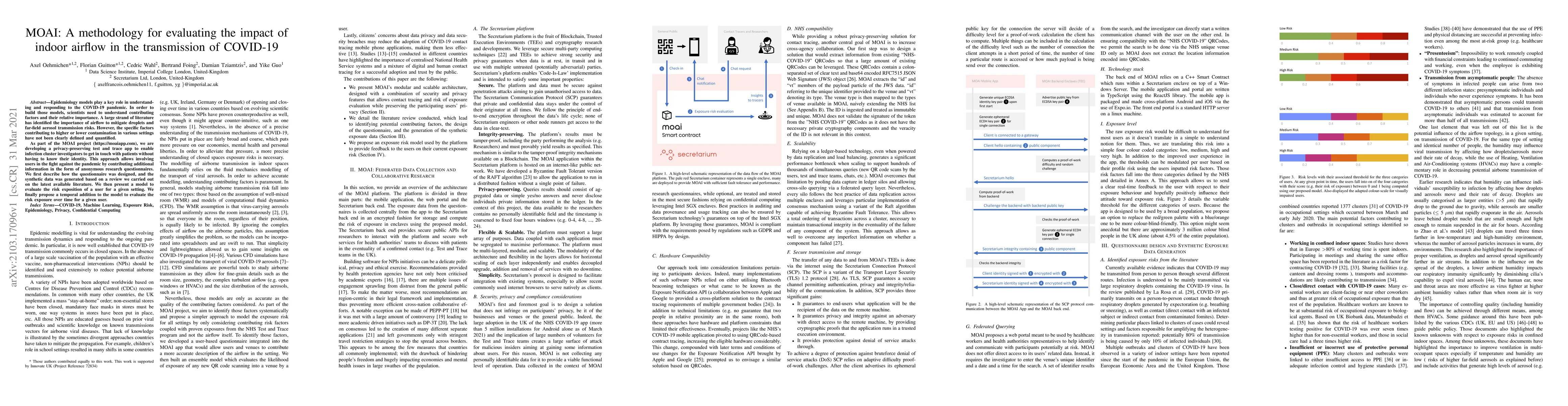 Epidemiology models play a key role in understanding and responding to the COVID-19 pandemic. In order to build those models, scientists need to understand contributing factors and their relative importance. A large strand of literature has identified the importance of airflow to mitigate droplets and far-field aerosol transmission risks. However, the specific factors contributing to higher or lower contamination in various settings have not been clearly defined and quantified. As part of the MOAI project (https://moaiapp.com), we are developing a privacy-preserving test and trace app to enable infection cluster investigators to get in touch with patients without having to know their identity. This approach allows involving users in the fight against the pandemic by contributing additional information in the form of anonymous research questionnaires. We first describe how the questionnaire was designed, and the synthetic data was generated based on a review we carried out on the latest available literature. We then present a model to evaluate the risk exposition of a user for a given setting. We finally propose a temporal addition to the model to evaluate the risk exposure over time for a given user.