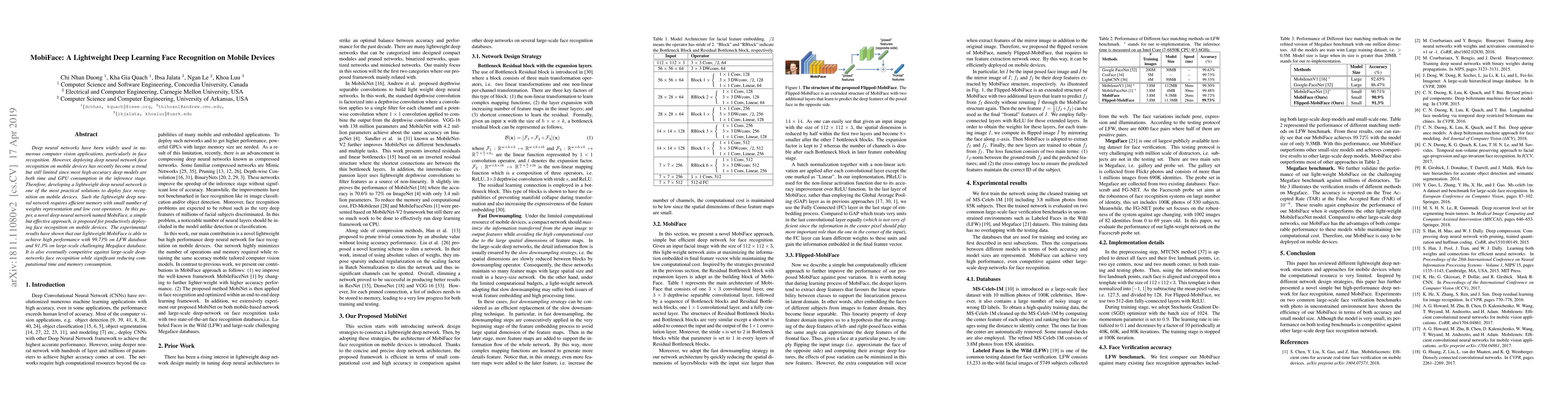 The paper proposes MobiFace, a lightweight deep neural network for face recognition on mobile devices, achieving high accuracy with reduced computational time and memory consumption. Experimental results show 99.73% accuracy on LFW and 91.3% on Megaface, outperforming large-scale deep networks in efficiency.