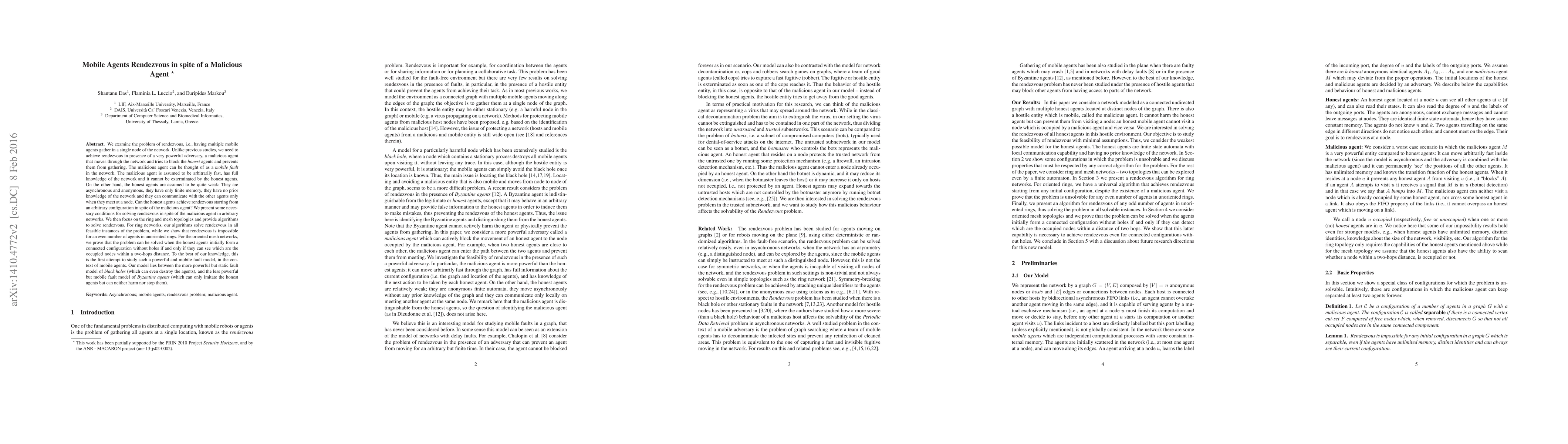 Presented algorithms for rendezvous of k honest agents in ring networks and oriented n x m meshes