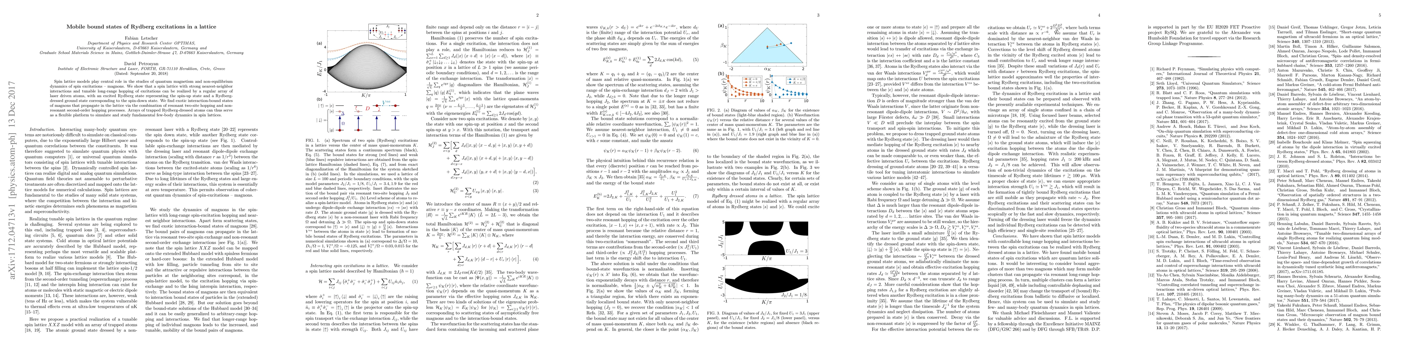 This paper demonstrates the creation of a spin lattice model using laser-driven Rydberg atoms, where magnons exhibit exotic bound states due to a combination of resonant and non-resonant hopping processes. Such arrays of Rydberg atoms provide a versatile platform for simulating fundamental dynamics in spin lattice systems.