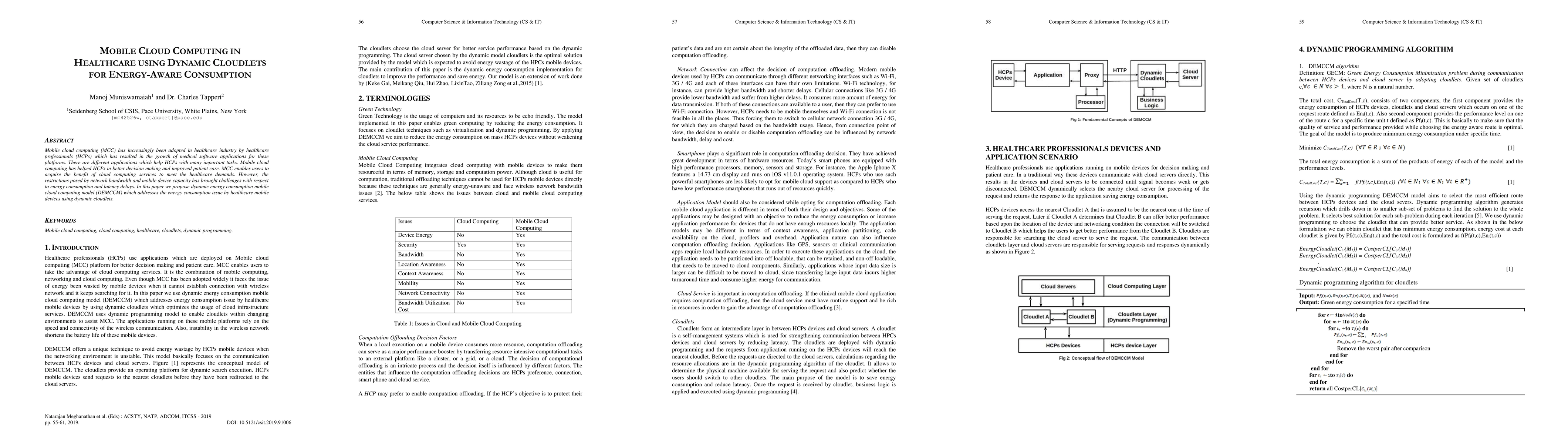 This paper proposes a dynamic energy consumption mobile cloud computing model (DEMCCM) to address energy-related challenges in healthcare mobile devices. DECCMM leverages dynamic cloudlets to optimize energy usage, thereby improving efficiency and reducing latency in healthcare applications.