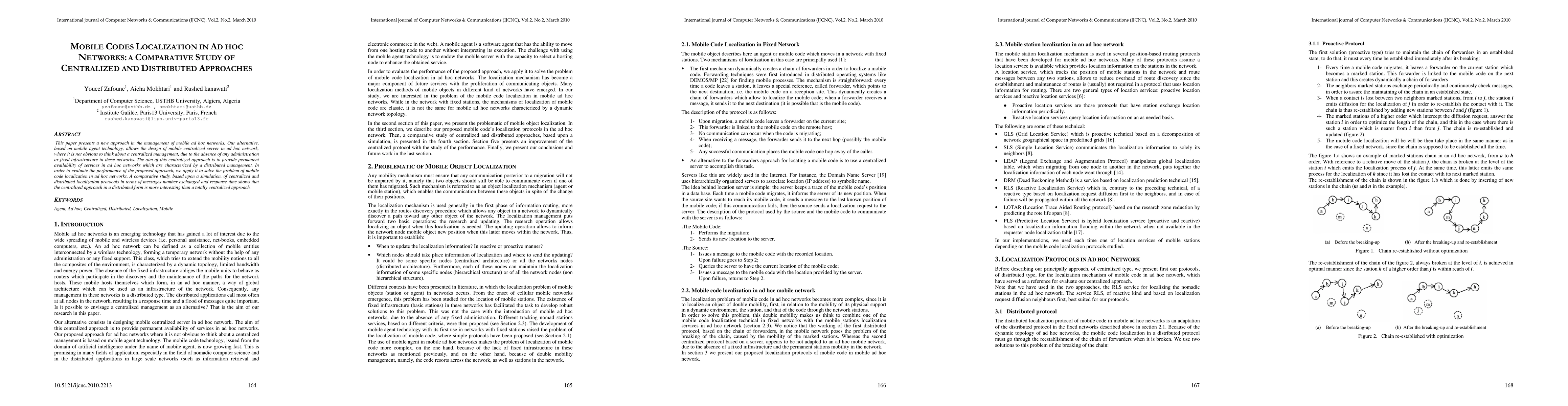 This paper presents a new approach in the management of mobile ad hoc networks. Our alternative, based on mobile agent technology, allows the design of mobile centralized server in ad hoc network, where it is not obvious to think about a centralized management, due to the absence of any administration or fixed infrastructure in these networks. The aim of this centralized approach is to provide permanent availability of services in ad hoc networks which are characterized by a distributed management. In order to evaluate the performance of the proposed approach, we apply it to solve the problem of mobile code localization in ad hoc networks. A comparative study, based upon a simulation, of centralized and distributed localization protocols in terms of messages number exchanged and response time shows that the centralized approach in a distributed form is more interesting than a totally centralized approach.