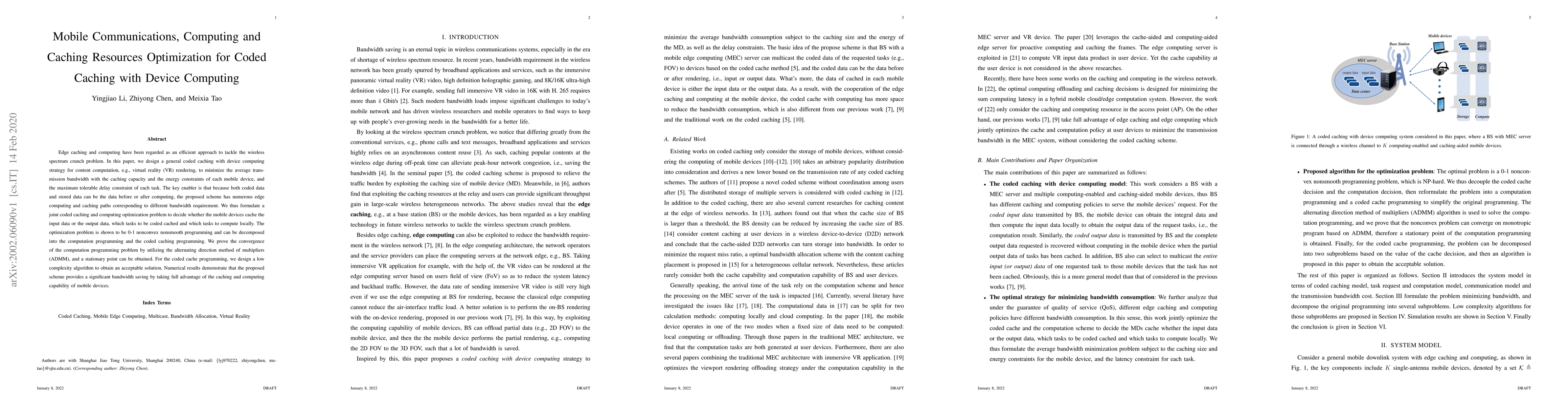 The paper presents a novel approach to optimize coded caching and device computing by decomposing the original problem into subproblems, each solvable using efficient algorithms, thereby significantly reducing average transmission bandwidth.