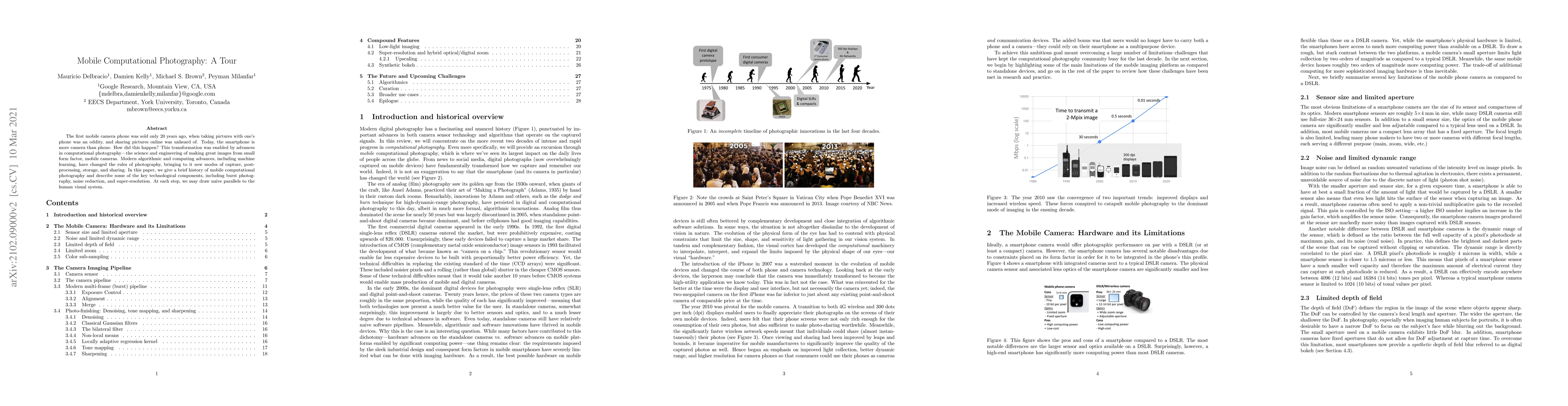 This paper provides a historical overview of the evolution of mobile computational photography, highlighting key technological advancements such as burst photography, noise reduction, and super-resolution, which have transformed smartphones into powerful imaging devices. It also draws parallels between these innovations and human visual processes.