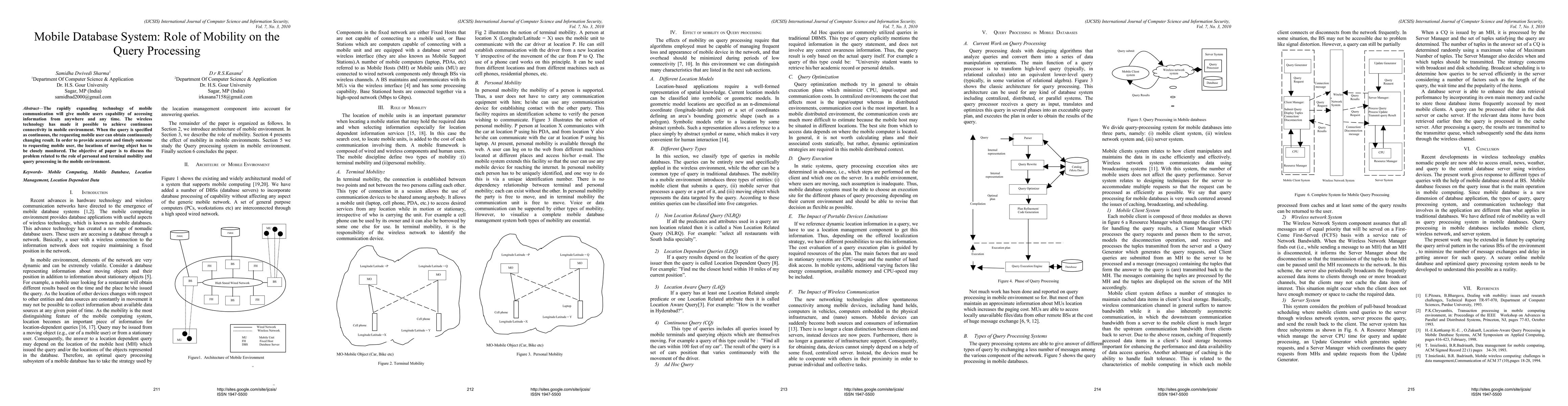 The rapidly expanding technology of mobile communication will give mobile users capability of accessing information from anywhere and any time. The wireless technology has made it possible to achieve continuous connectivity in mobile environment. When the query is specified as continuous, the requesting mobile user can obtain continuously changing result. In order to provide accurate and timely outcome to requesting mobile user, the locations of moving object has to be closely monitored. The objective of paper is to discuss the problem related to the role of personal and terminal mobility and query processing in the mobile environment.