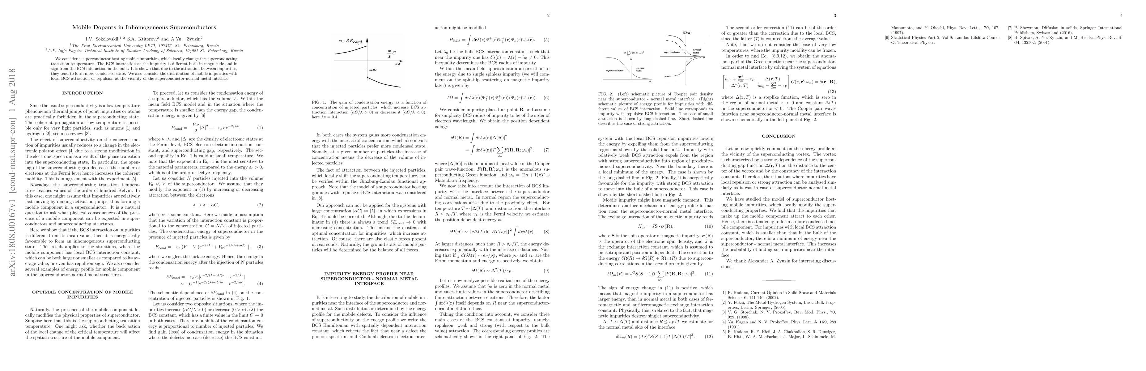 We consider a superconductor hosting mobile impurities, which locally change the superconducting transition temperature. The BCS interaction at the impurity is different both in magnitude and in sign from the BCS interaction in the bulk. It is shown that due to the attraction between impurities, they tend to form more condensed state. We also consider the distribution of mobile impurities with local BCS attraction or repulsion at the vicinity of the superconductor-normal metal interface.
