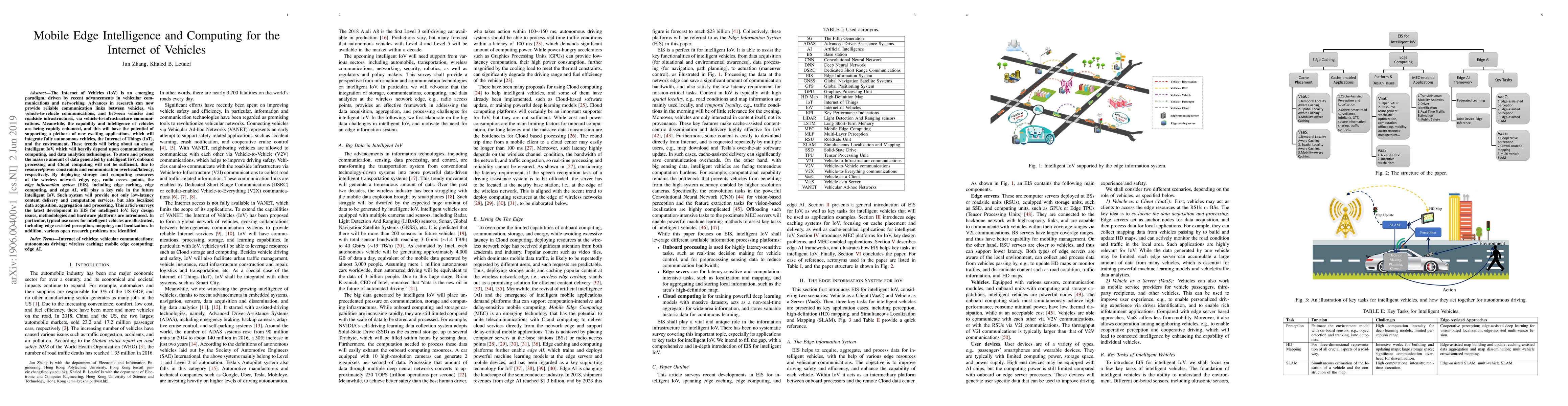 This paper surveys the integration of Mobile Edge Intelligence and Computing for the Internet of Vehicles (IoV), highlighting the role of edge information systems in addressing resource and latency challenges. It discusses key design issues, methodologies, and hardware platforms, and illustrates use cases like edge-assisted perception and localization, while identifying open research problems.
