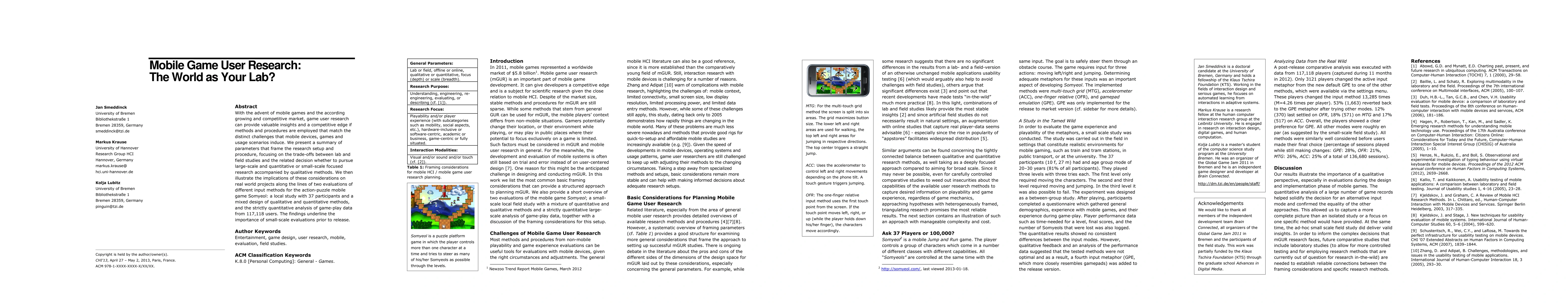 Mobile game user research can provide valuable insights by balancing lab and field studies, with a focus on small-scale evaluations before release to ensure competitiveness. Small-scale studies with qualitative methods can be more effective than large-scale quantitative analyses.