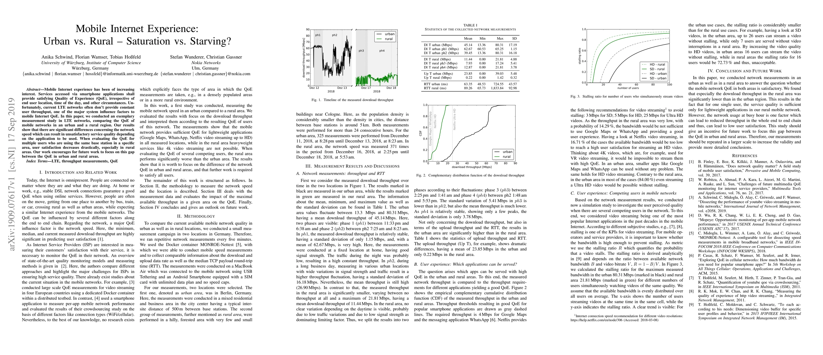 Mobile Internet experience has been of increasing interest. Services accessed via smartphone applications shall provide satisfying Quality of Experience (QoE), irrespective of end user location, time of the day, and other circumstances. Unfortunately, current LTE networks often don't provide constant user throughput, one of the major system influence factors to mobile Internet QoE. In this paper, we conducted an exemplary measurement study in LTE networks, comparing the QoE of mobile networks in an urban and a rural region. Our results show that there are significant differences concerning the network speed which can result in unsatisfactory service quality depending on the application to be used. When evaluating the QoE for multiple users who are using the same base station in a specific area, user satisfaction decreases drastically, especially in rural areas. Our work encourages for future work to focus on this gap between the QoE in urban and rural areas.