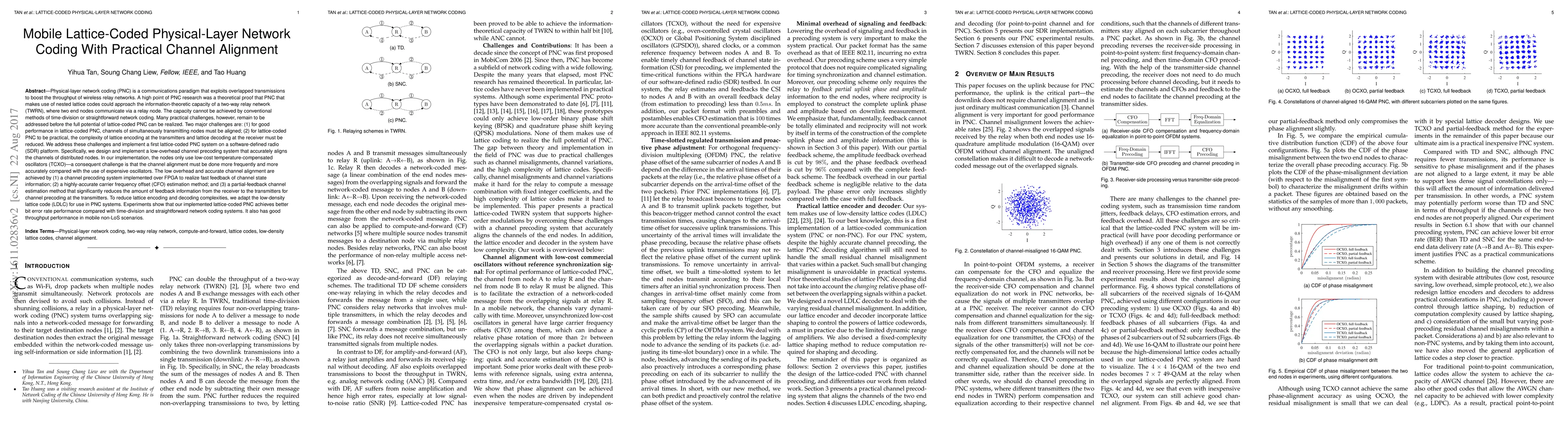 This paper proposes a mobile lattice-coded physical-layer network coding system with practical channel alignment, addressing the challenges of channel alignment and complexity reduction. It implements a low-overhead channel precoding system on a software-defined radio platform, utilizing FPGA and advanced frequency offset estimation to achieve accurate channel alignment and low-density lattice codes to reduce encoding and decoding complexities.
