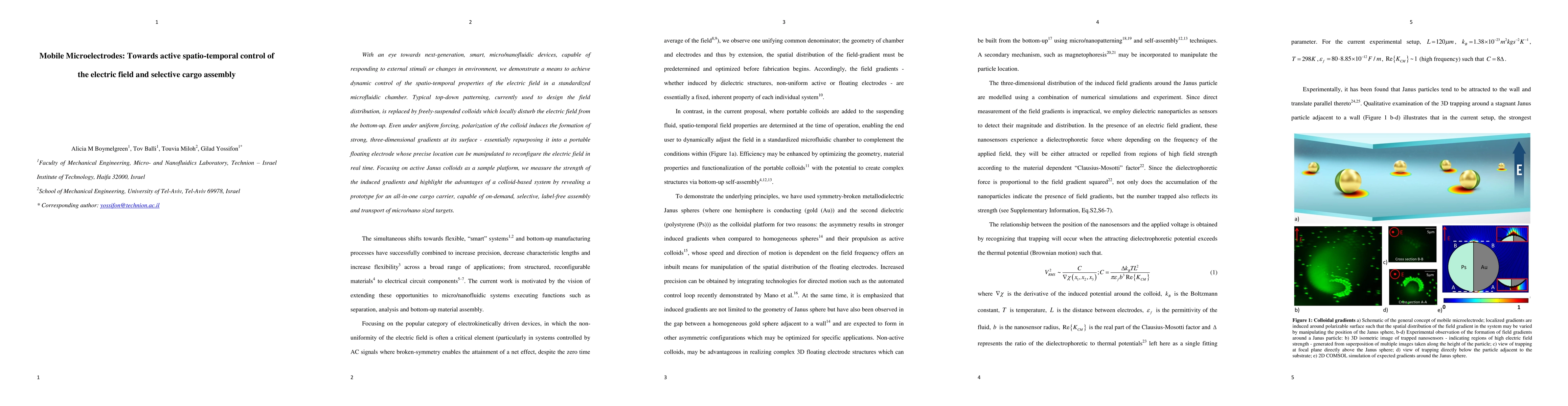 With an eye towards next-generation, smart, micro/nanofluidic devices, capable of responding to external stimuli or changes in environment, we demonstrate a means to achieve dynamic control of the spatio-temporal properties of the electric field in a standardized microfluidic chamber. Typical top-down patterning, currently used to design the field distribution, is replaced by freely-suspended colloids which locally disturb the electric field from the bottom-up. Even under uniform forcing, polarization of the colloid induces the formation of strong, three-dimensional gradients at its surface - essentially repurposing it into a portable floating electrode whose precise location can be manipulated to reconfigure the electric field in real time. Focusing on active Janus colloids as a sample platform, we measure the strength of the induced gradients and highlight the advantages of a colloid-based system by revealing a prototype for an all-in-one cargo carrier, capable of on-demand, selective, label-free assembly and transport of micro/nano sized targets.