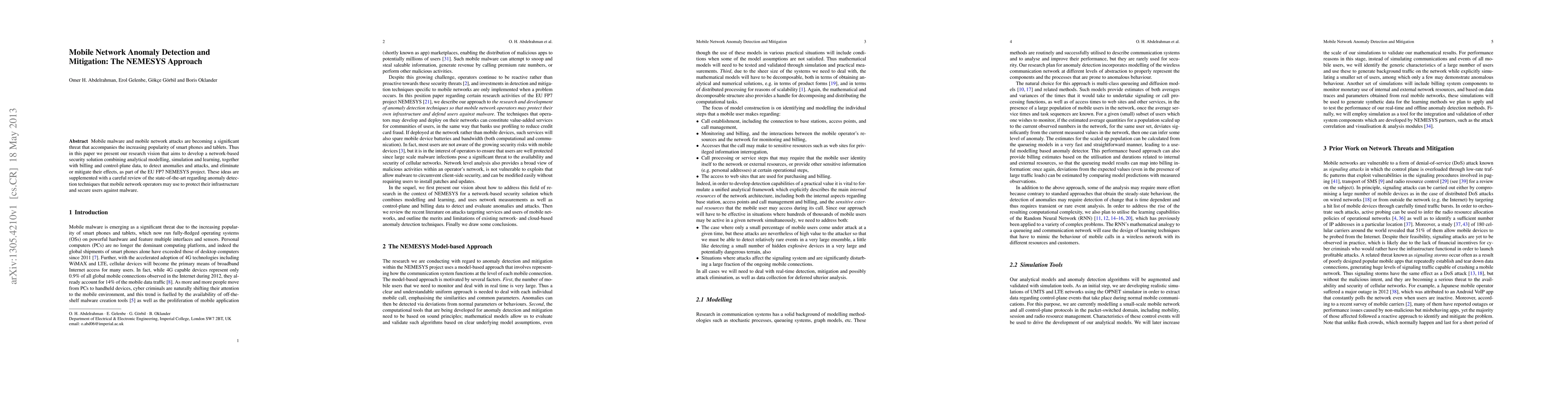 This paper proposes a network-based security solution, NEMESYS, to detect and mitigate mobile network anomalies and attacks using analytical modeling, simulation, and learning, alongside billing and control-plane data, as part of the EU FP7 NEMESYS project. It reviews state-of-the-art anomaly detection techniques for mobile network security.