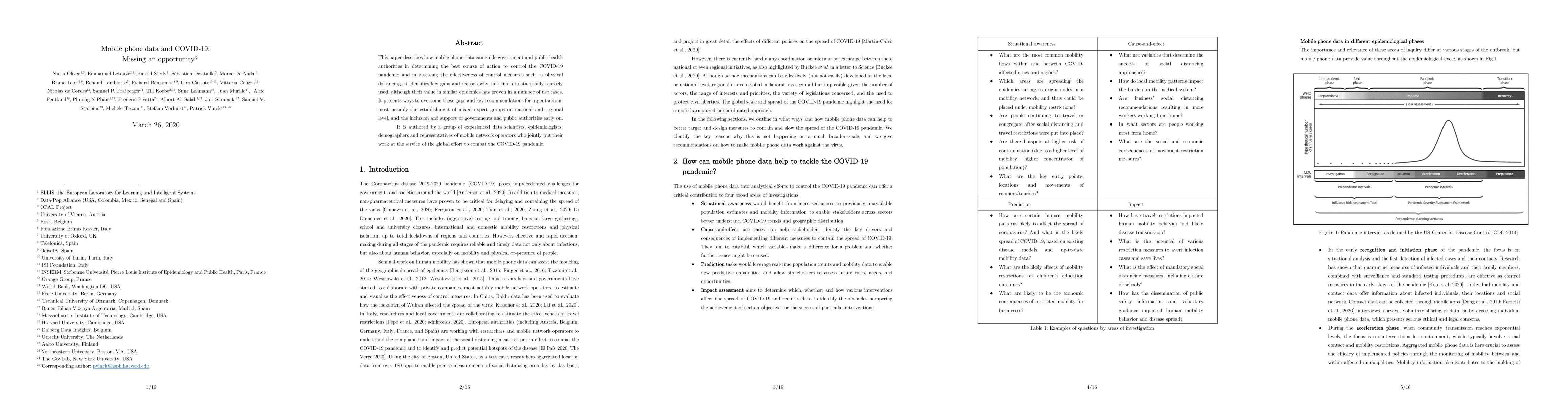 This paper describes how mobile phone data can guide government and public health authorities in determining the best course of action to control the COVID-19 pandemic and in assessing the effectiveness of control measures such as physical distancing. It identifies key gaps and reasons why this kind of data is only scarcely used, although their value in similar epidemics has proven in a number of use cases. It presents ways to overcome these gaps and key recommendations for urgent action, most notably the establishment of mixed expert groups on national and regional level, and the inclusion and support of governments and public authorities early on. It is authored by a group of experienced data scientists, epidemiologists, demographers and representatives of mobile network operators who jointly put their work at the service of the global effort to combat the COVID-19 pandemic.