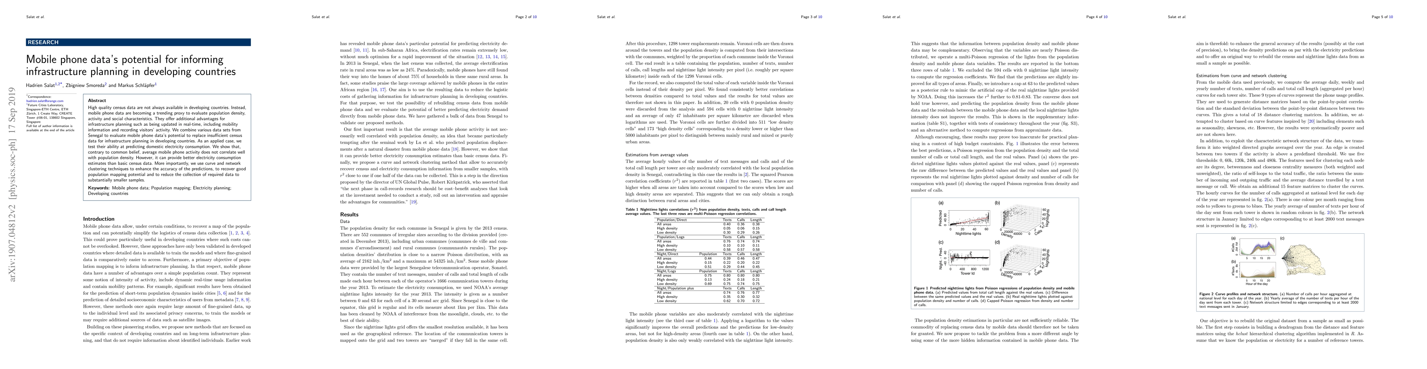 This paper explores the use of mobile phone data as an alternative to census data for infrastructure planning in developing countries, using Senegal as a case study. It finds that while mobile phone activity does not correlate well with population density, it can provide more accurate estimates of domestic electricity consumption than traditional census data, especially when enhanced with clustering techniques.