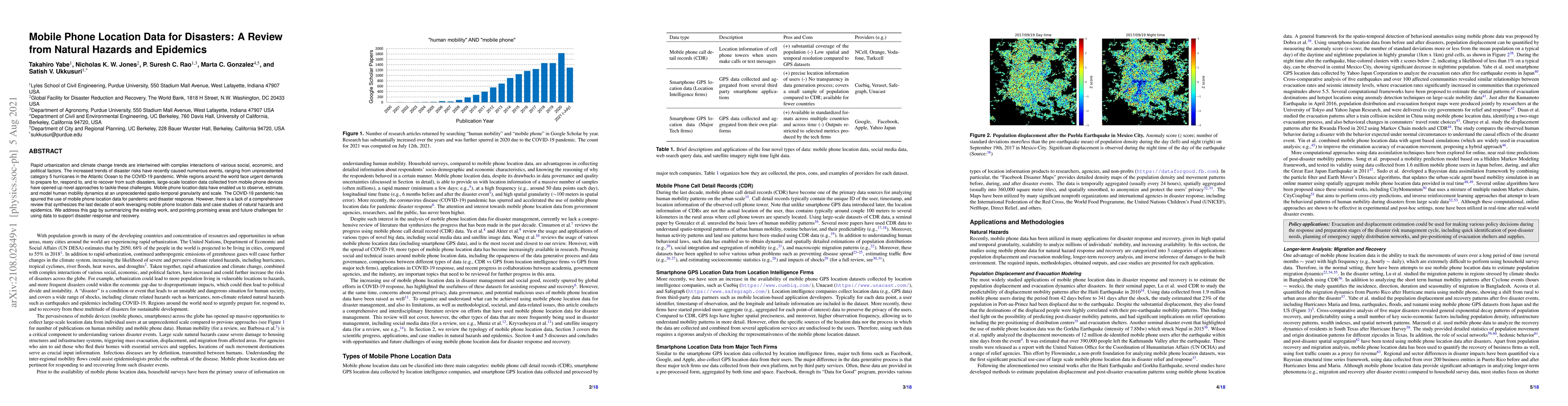 This paper reviews the use of mobile phone location data to address natural hazards and epidemics, highlighting its role in enhancing disaster response and recovery. It synthesizes a decade of research, identifies promising applications, and outlines future challenges in leveraging this data for effective disaster management.
