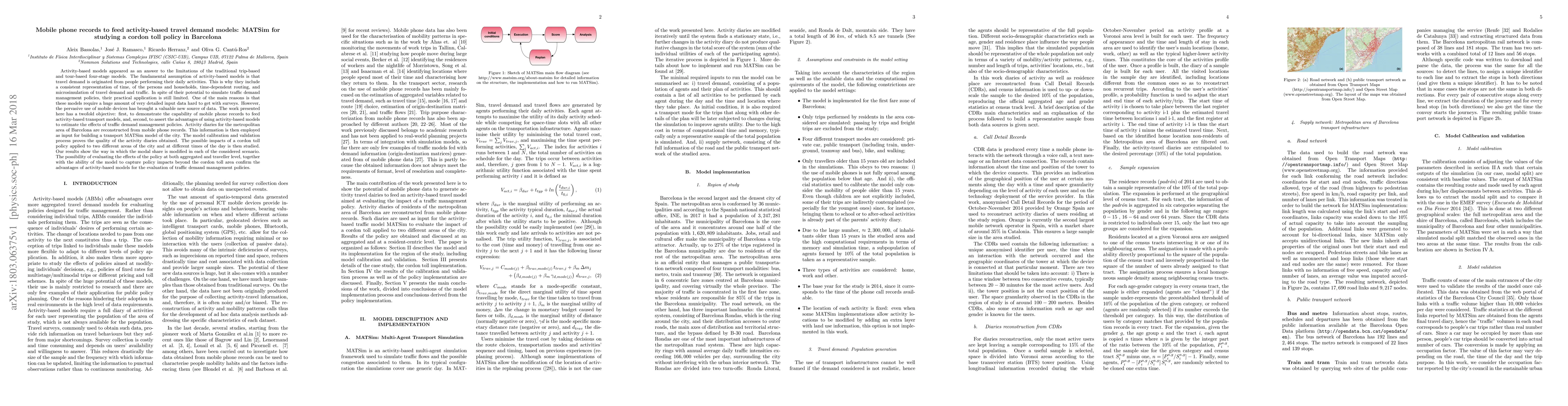 This paper demonstrates the use of mobile phone records to feed activity-based transport models, specifically MATSim, to study the effects of a cordon toll policy in Barcelona. The study reconstructs activity diaries from mobile data and validates the model, showing how activity-based models can effectively evaluate traffic demand management policies at both aggregated and individual levels.