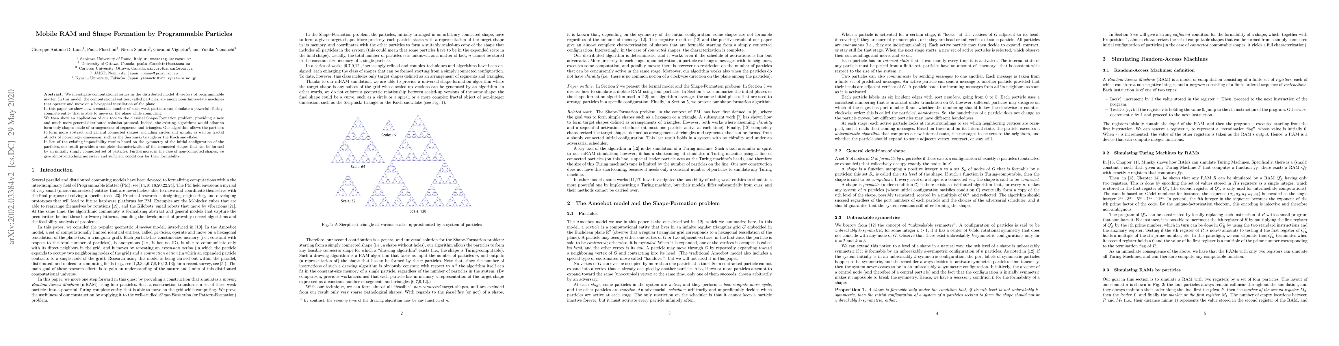 We investigate computational issues in the distributed model Amoebots of programmable matter. In this model, the computational entities, called particles, are anonymous finite-state machines that operate and move on an hexagonal tasselation of the plane. In this paper we show how a constant number of such weak particles can simulate a powerful Turing-complete entity that is able to move on the plane while computing. We then show an application of our tool to the classical Shape-Formation problem, providing a new and much more general distributed solution protocol. Indeed, the existing algorithms would allow to form only shapes made of arrangements of segments and triangles. Our algorithm allows the particles to form more abstract and general connected shapes, including circles and spirals, as well as fractal objects of non-integer dimension, such as the Sierpinski triangle or the Koch snowflake. In lieu of the existing limitation on the formability of a shape depending on the symmetry of the initial configuration of the particles, our result provides a complete characterization of the connected shapes that can be formed by an initially simply connected set of particles. Furthermore, in the case of non-connected shapes, we give almost-matching necessary and sufficient conditions for their formability.