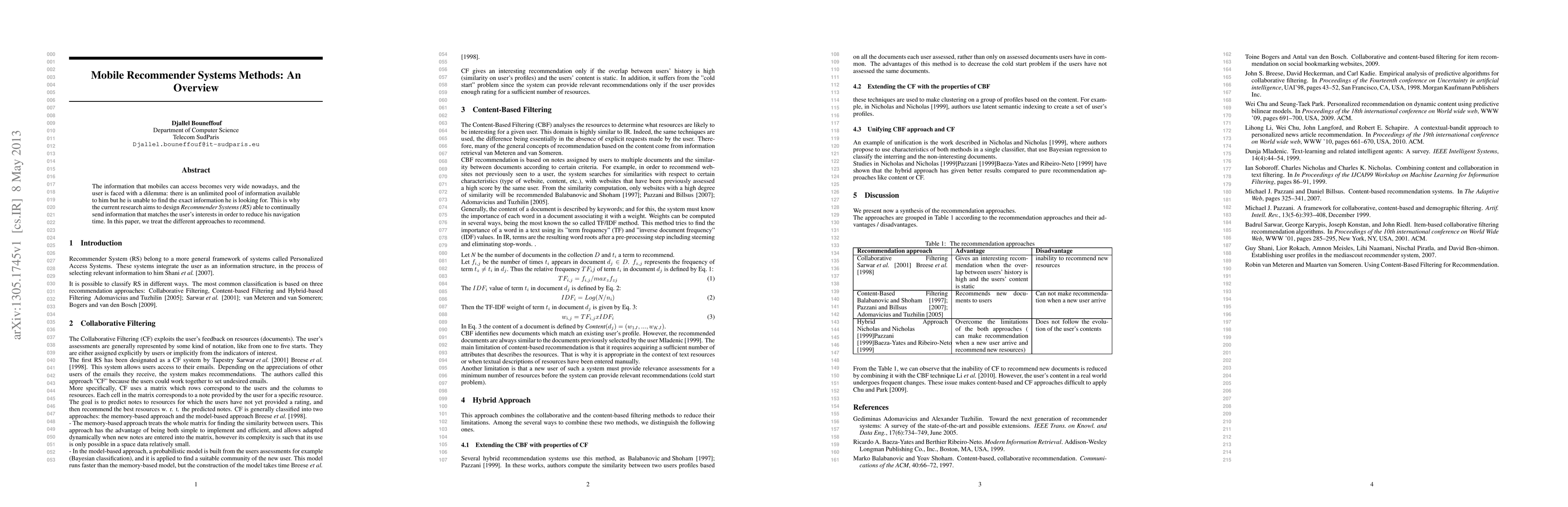 The information that mobiles can access becomes very wide nowadays, and the user is faced with a dilemma: there is an unlimited pool of information available to him but he is unable to find the exact information he is looking for. This is why the current research aims to design Recommender Systems (RS) able to continually send information that matches the user's interests in order to reduce his navigation time. In this paper, we treat the different approaches to recommend.