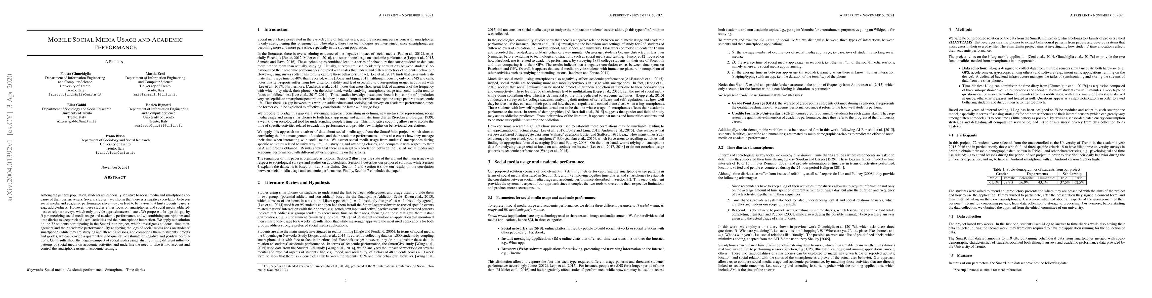 This study investigates the correlation between mobile social media usage and academic performance among students, employing a quantitative analysis of smartphone logs and academic records. It finds a negative impact of social media on academic performance, highlighting different influence patterns and emphasizing the need for smartphone usage control in academic settings.