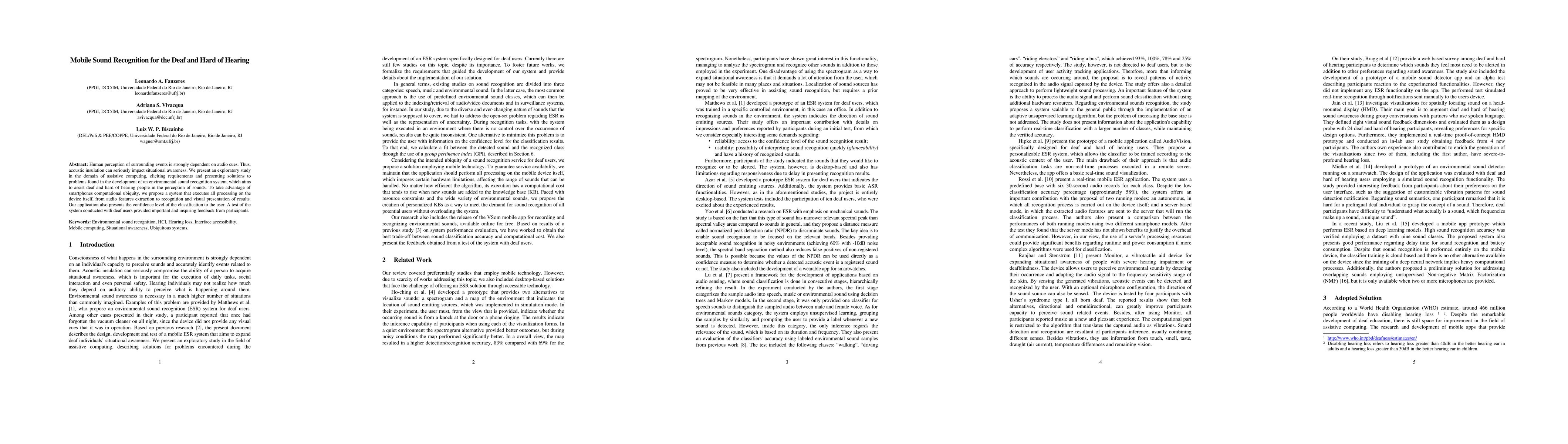 This study explores the development of a mobile sound recognition system to assist deaf and hard of hearing individuals in perceiving environmental sounds, leveraging smartphone computational capabilities. The system provides visual feedback with confidence levels, and initial user testing with deaf participants yielded valuable feedback.