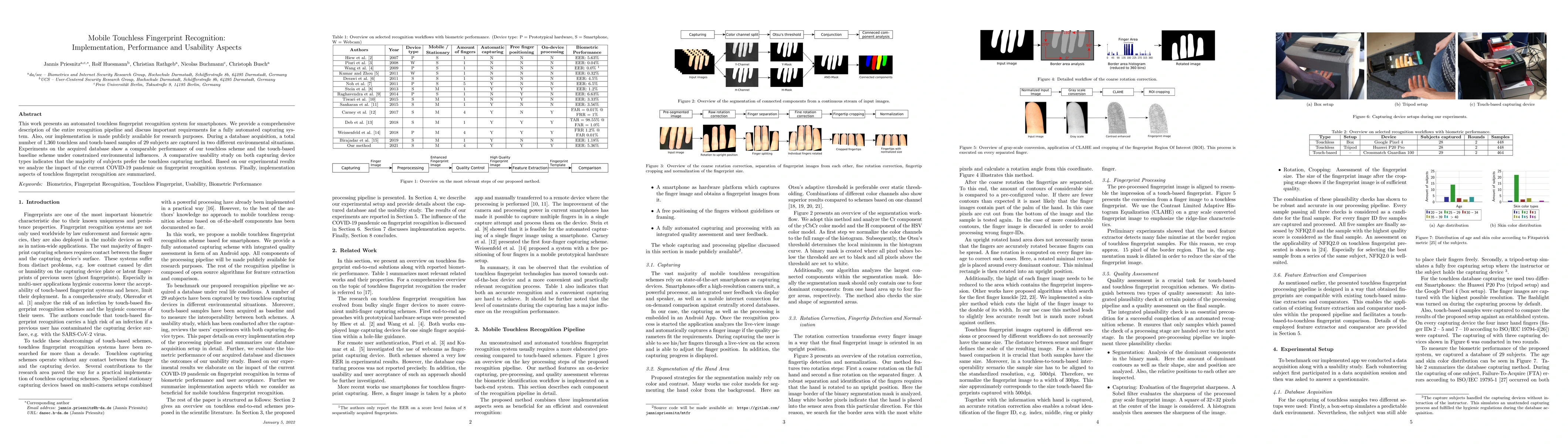 This work presents an automated touchless fingerprint recognition system for smartphones. We provide a comprehensive description of the entire recognition pipeline and discuss important requirements for a fully automated capturing system. Also, our implementation is made publicly available for research purposes. During a database acquisition, a total number of 1,360 touchless and touch-based samples of 29 subjects are captured in two different environmental situations. Experiments on the acquired database show a comparable performance of our touchless scheme and the touch-based baseline scheme under constrained environmental influences. A comparative usability study on both capturing device types indicates that the majority of subjects prefer the touchless capturing method. Based on our experimental results we analyze the impact of the current COVID-19 pandemic on fingerprint recognition systems. Finally, implementation aspects of touchless fingerprint recognition are summarized.