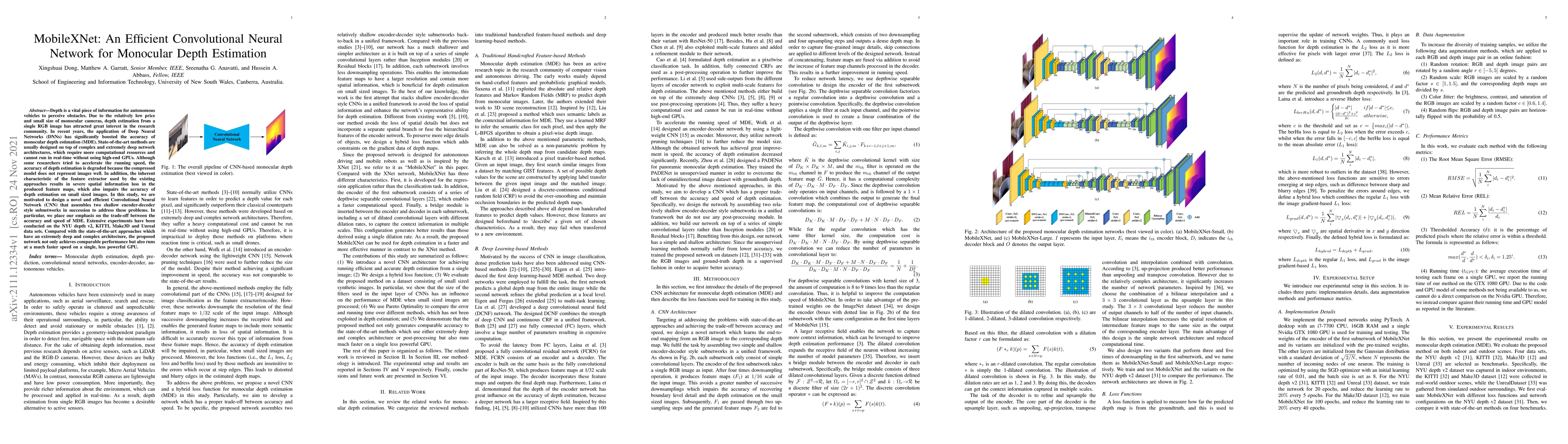MobileXNet proposes an efficient Convolutional Neural Network for monocular depth estimation that combines two shallow encoder-decoder subnetworks to balance accuracy and speed. The method achieves comparable performance to complex, deep networks while significantly improving real-time processing speed on less powerful hardware.