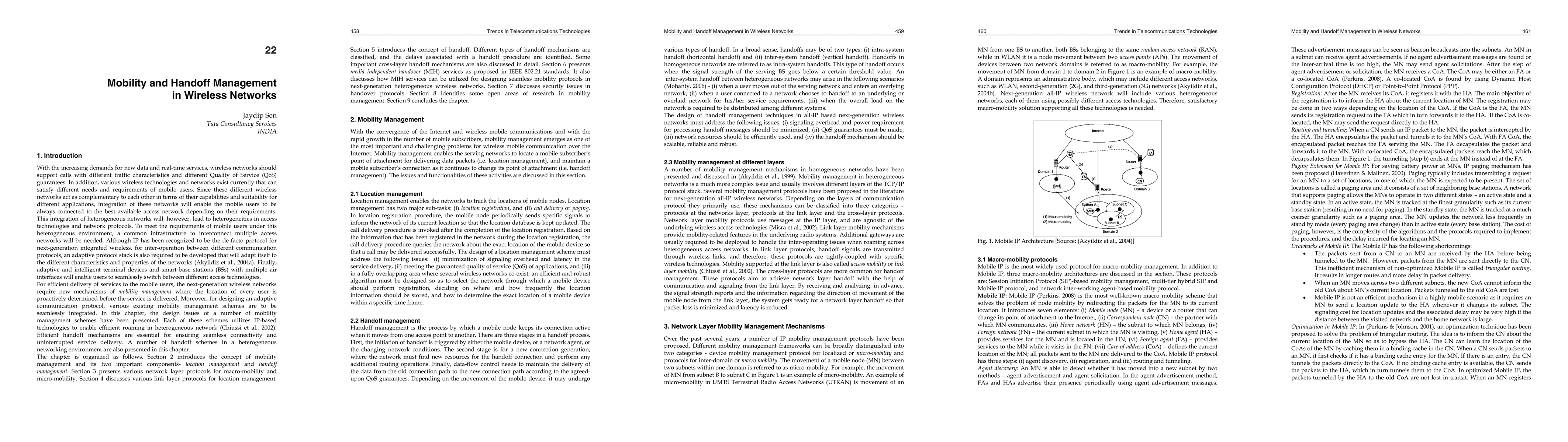 The paper presents various mobility management protocols and handoff schemes tailored for heterogeneous wireless networks, emphasizing IP-based technologies.