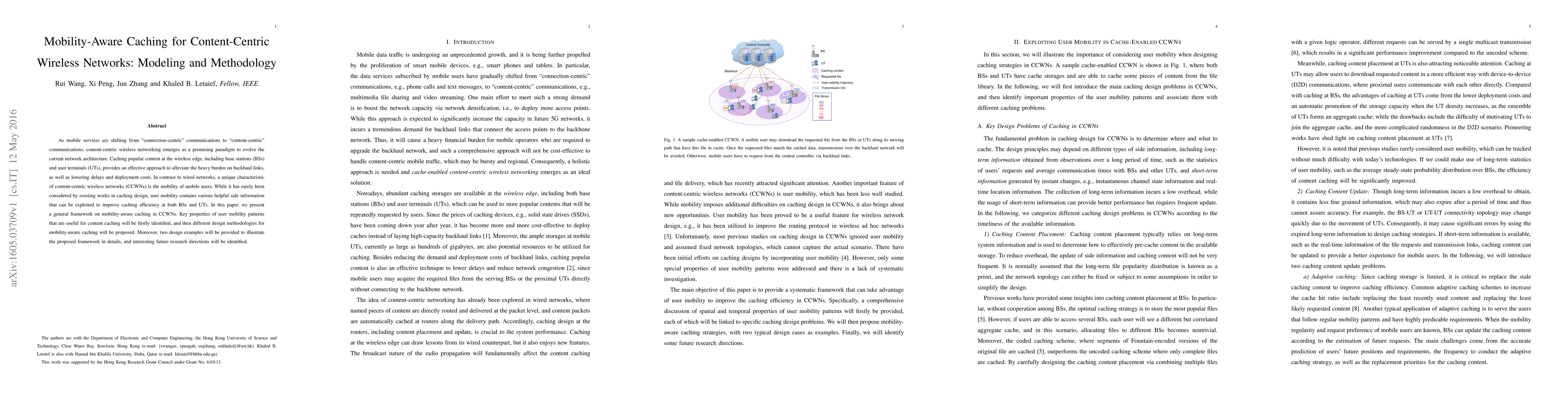 This paper introduces a framework for mobility-aware caching in content-centric wireless networks, identifying key user mobility patterns to enhance caching efficiency. It proposes various design methodologies and provides examples to illustrate the framework, aiming to alleviate backhaul burdens and reduce delays.