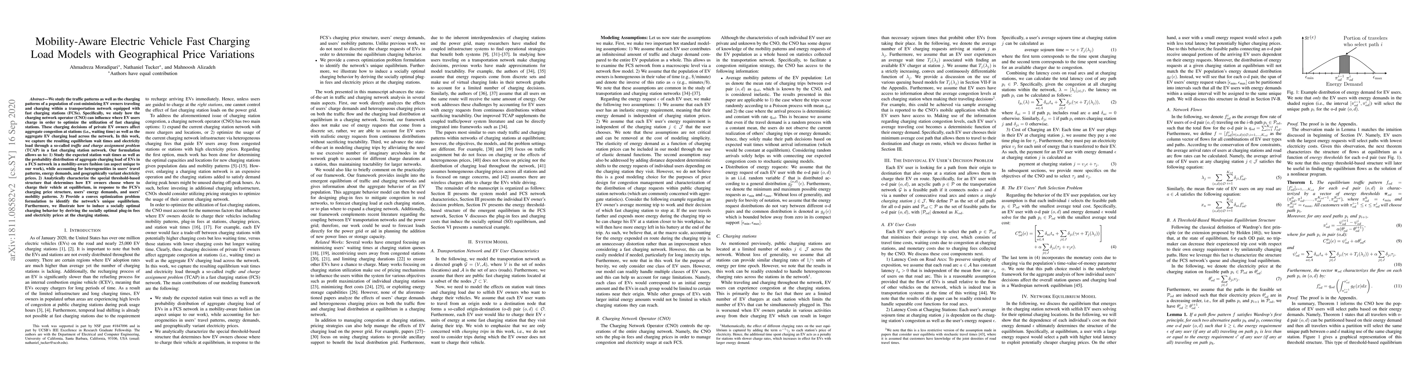 We study the traffic patterns as well as the charging patterns of a population of cost-minimizing EV owners traveling and charging within a transportation network equipped with fast charging stations (FCSs). Specifically, we study how the charging network operator (CNO) can influence where EV users charge in order to optimize the utilization of fast charging stations. These charging decisions of private EV owners affect aggregate congestion at stations (i.e., waiting time) as well as the aggregate EV charging load across the network. In this work, we capture the resulting equilibrium wait times and electricity load through a so-called \textit{traffic and charge assignment problem} (TCAP) in a fast charging station network. Our formulation allows us to: 1) Study the expected station wait times as well as the probability distribution of aggregate charging load of EVs in a FCS network in a mobility-aware fashion (an aspect unique to our work), while accounting for heterogeneities in users' travel patterns, energy demands, and geographically variant electricity prices. 2) Analytically characterize the special threshold-based structure that determines how EV owners choose where to charge their vehicle at equilibrium, in response to the FCS's charging price structure, users' energy demands, and users' mobility patterns. 3) Provide a convex optimization problem formulation to identify the network's unique equilibrium. Furthermore, we illustrate how to induce a socially optimal charging behavior by deriving the socially optimal plug-in fees and electricity prices at the charging stations.