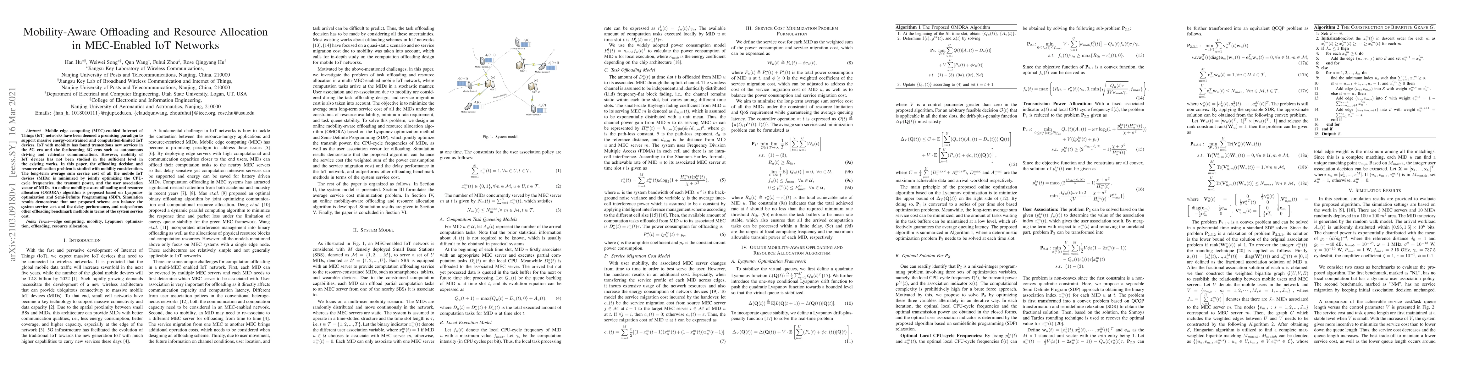 This paper proposes an online mobility-aware offloading and resource allocation (OMORA) algorithm for MEC-enabled IoT networks, optimizing CPU-cycle frequencies, transmit power, and user association to minimize service cost while considering device mobility. Simulation results show that OMORA effectively balances service cost and delay performance, outperforming existing methods.
