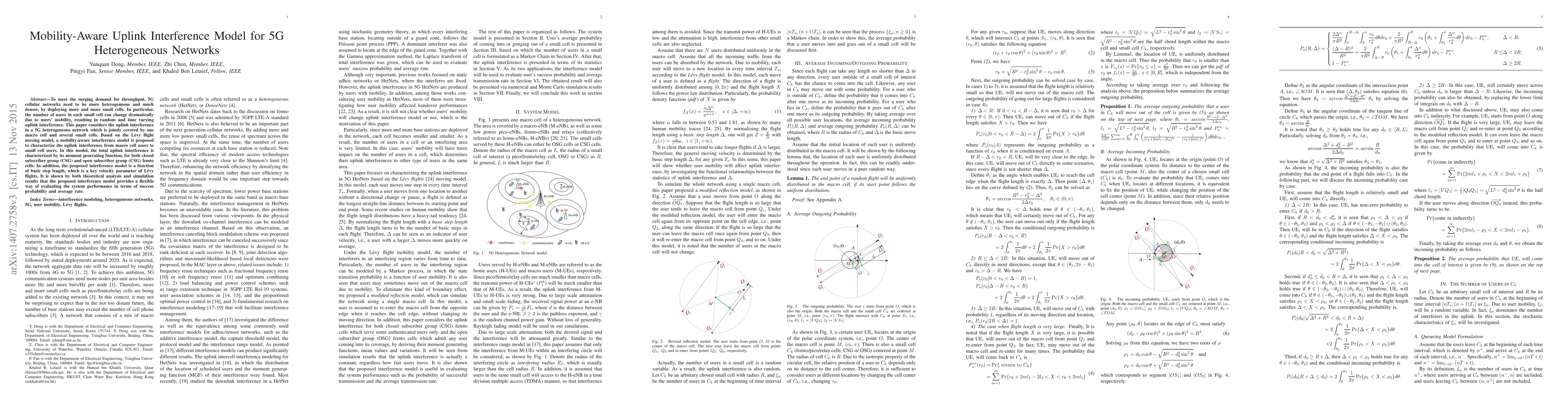 This paper proposes a mobility-aware uplink interference model for 5G heterogeneous networks using the Lévy flight moving model, focusing on the interference from macro cell users to small cell users. The model's effectiveness is validated through theoretical analysis and simulation, showing it evaluates system performance in terms of success probability and average rate.